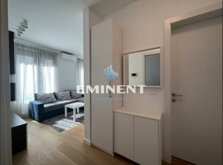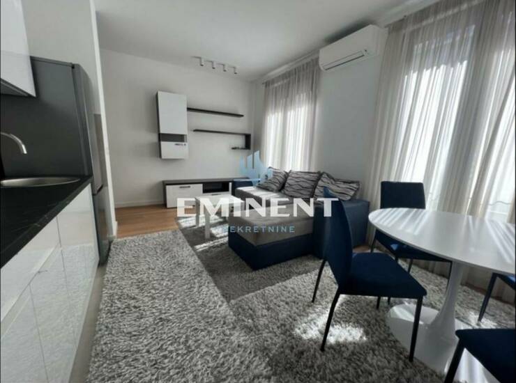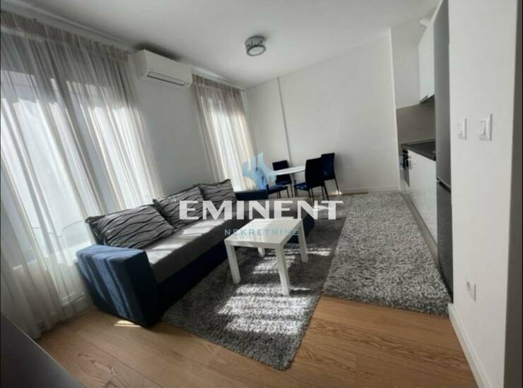 Funkcionalan stan u novogradnji, kompleks zatvorenog tipa, vrlo kvalitetne gradnje - K Distrikt. Stan je jako lepo uređen, ima odvojenu spavaću sobu, kompletno je opremljen. Garažno mesto po dogovoru. Zgrada poseduje recepciju i visok stepen obezbeđenja.