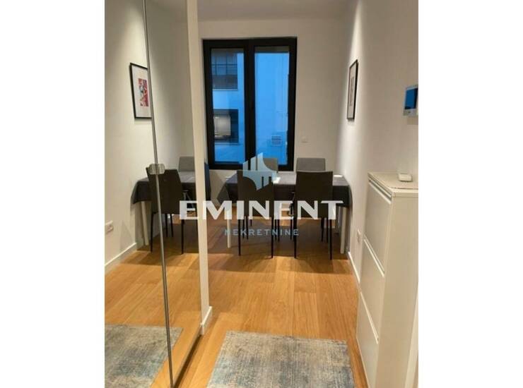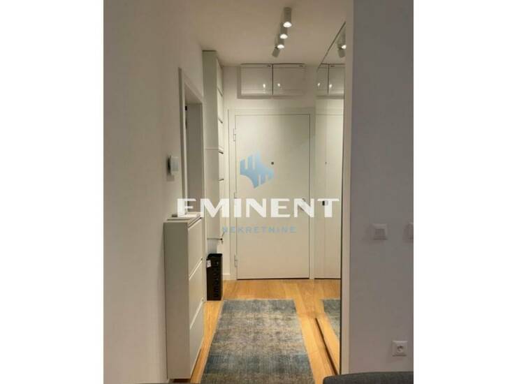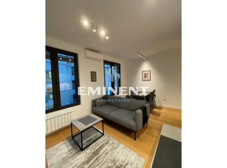 Komforan stan u luksuznom naselju K District, kompletno opremljen, odvojena spavaća soba, cg po utrošku, mogućnost zakupa garažnog mesta uz doplatu 150e, uređeno naselje, na šetalištu pored reke.
