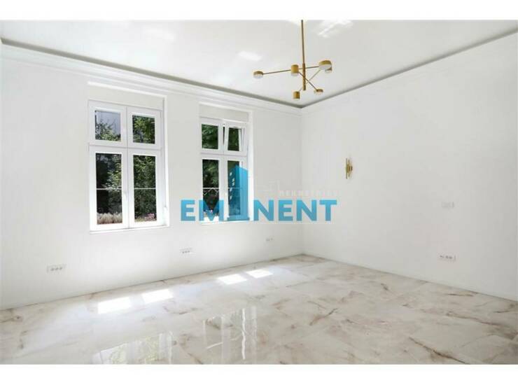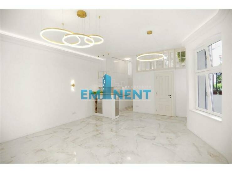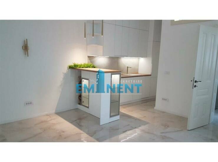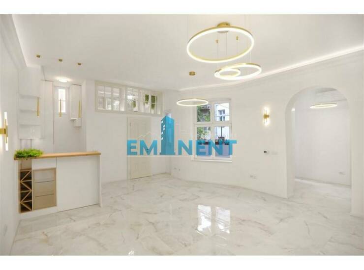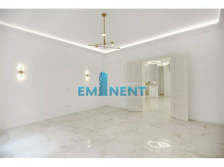 Veoma luksuzno sređen salonac, u potpunosti renoviran - debeli zidovi od cigle, mermerne podprozorne ploče, "carska vrata" od punog drveta, komforan, poseduje opremljenu kuhinju, dve spavaće sobe, dvorišno je orijentisan, postavljeno je podno grejanje, pogodan je i kao poslovni prostor. Nalazi se u vrlo održavanoj zgradi koja se nalazi pod zaštitom spomenika.