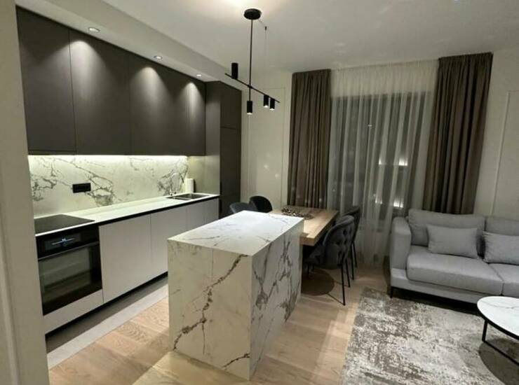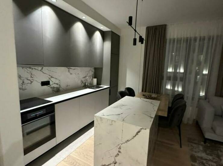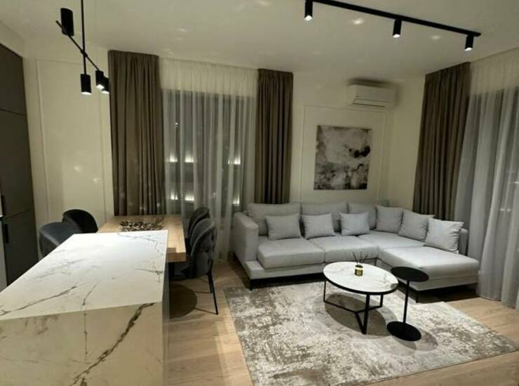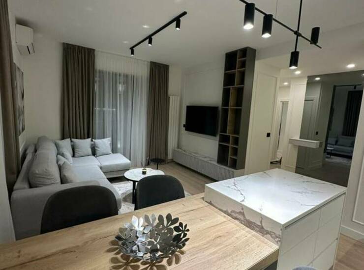 Stan je potpuno nov, moderno opremljen i spreman za useljenje. Sastoji se od prostrane dnevne sobe povezane sa savremenom kuhinjom i trpezarijom u open-space konceptu, dve komforne spavaće sobe, elegantnog kupatila i terase sa prijatnim pogledom.