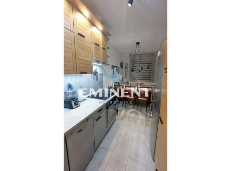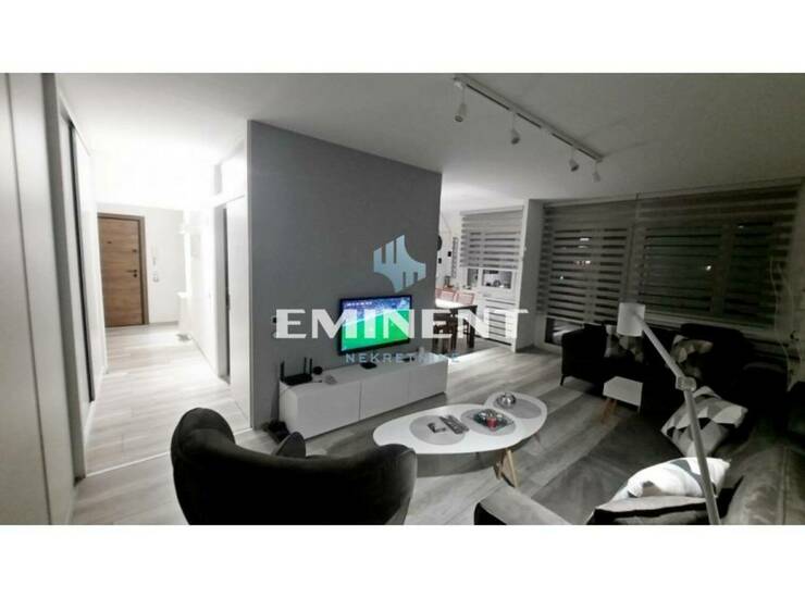 Kompletno, vrlo kvalitetno renoviran stan, potpuno opremljen, funkcionalan, komforan, poseduje dve spavaće sobe, kupatilo i toalet, slobodan parking, mogućnost zakupa garaže uz doplatu 150e.
