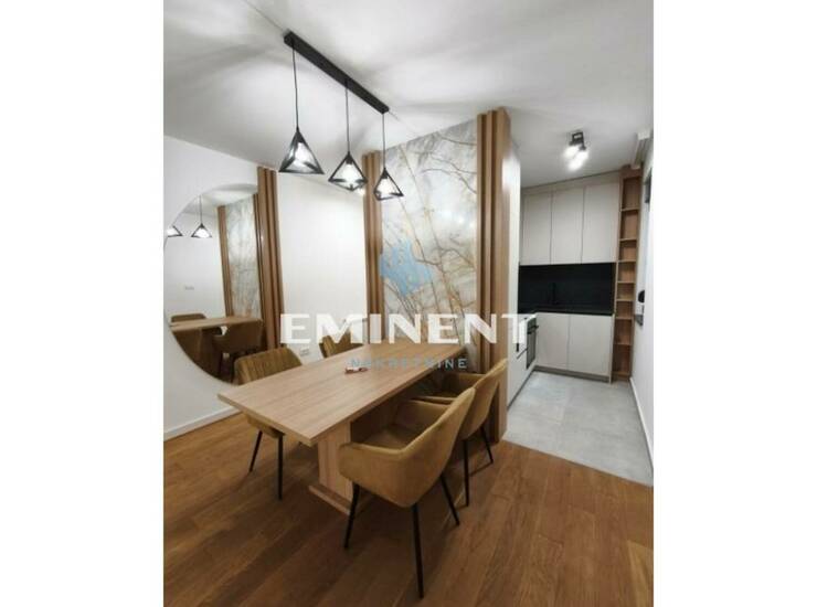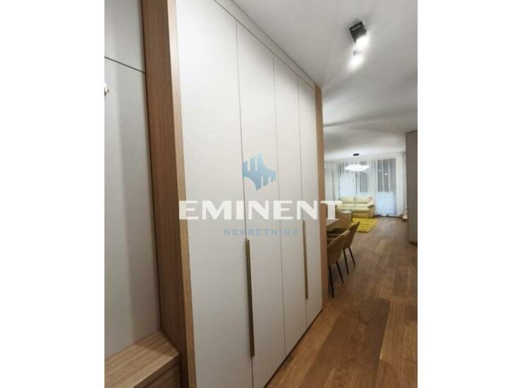 Luksuzno, jako lepo sređen stan u novogradnji, potpuno opremljen kvalitetnim nameštajem. Poseduje dnevni boravak sa trpezarijom, kuhinju, dve spavaće sobe, kupatilo i terasu dvorišno orijentisanu, mirnu, bez buke. CG je po utrošku, a garažno mesto je uračunato u cenu.