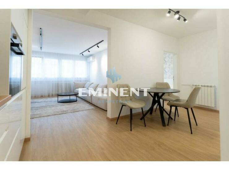 Kompletno renoviran, lux sređen stan, potpuno opremljen, poseduje dnevni boravak, kuhinju, trpezariju, dve spavaće sobe, kupatilo i terasu. Oko zgrade je slobodan parking.