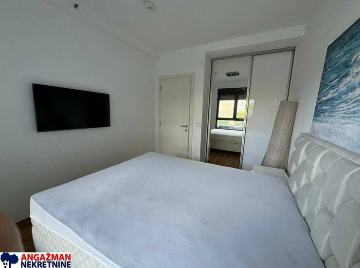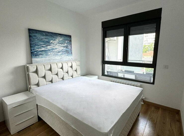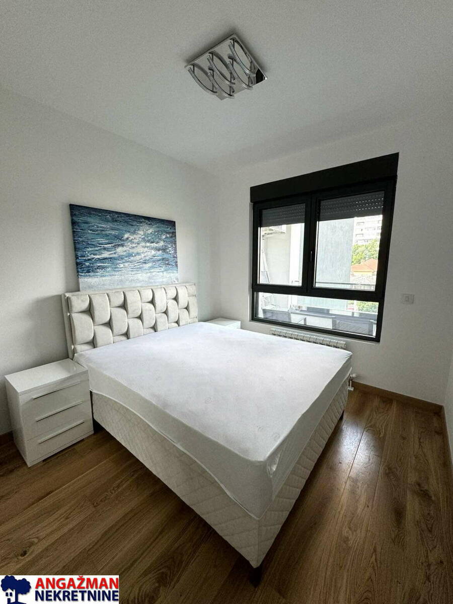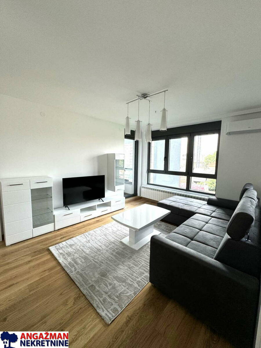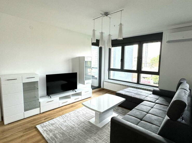 Neuseljavan dvosoban stan, moderno namešten i vrlo svetao, u najnovijoj zgradi u poznatom novom kompleksu Voždove kapije.
