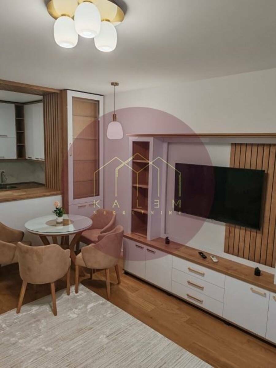 U novom stambenom kompleksu savremenog dizajna, nalazi se ovaj elegantan dvosoban stan koji spaja udobnost, funkcionalnost i luksuzan urbani stil života.