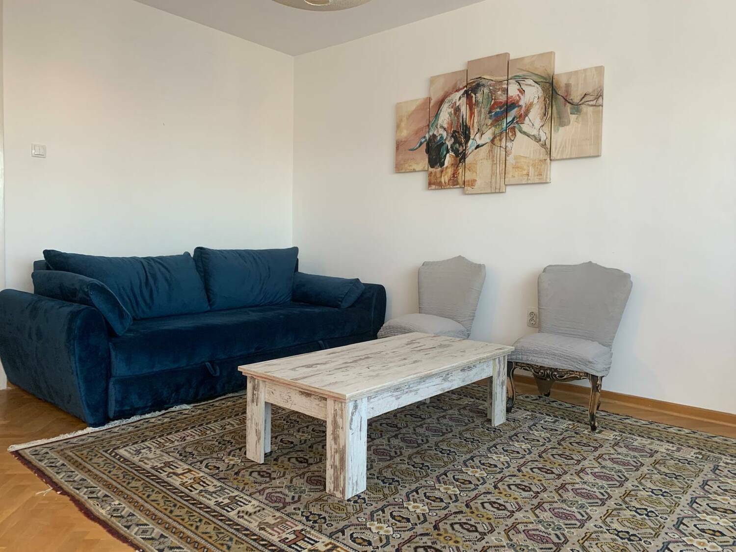 Grejanje je centralno, stan je opremljen klimom, internetom i svim neophodnim kucnim aparatima. U blizini su marketi, kafici, restorani, skole, vrtici i javni prevoz, sto lokaciju cini idealnom za zivot. Kucni ljubimci su dozvoljeni.
