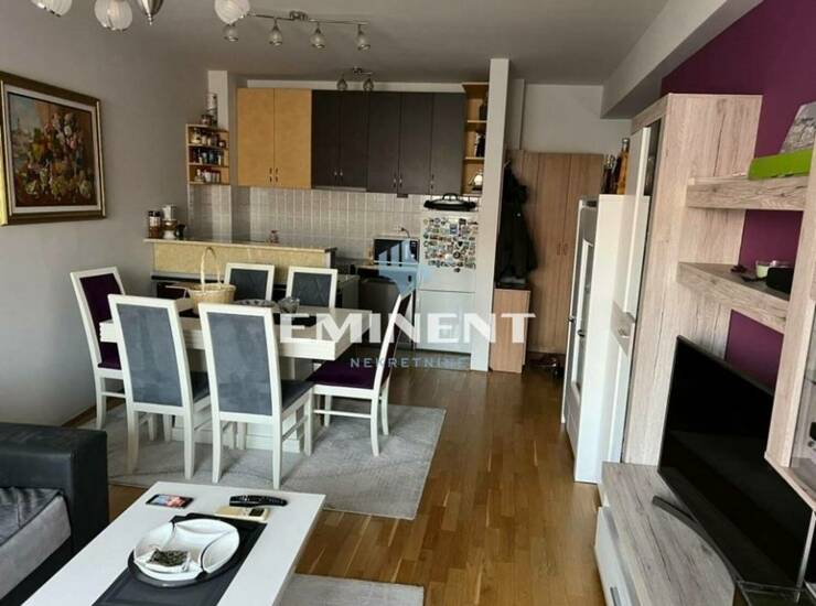 Komforan stan u zgradi novije gradnje, potpuno opremljen, poseduje odvojenu spavaću sobu, garažno mesto uračunato u cenu.