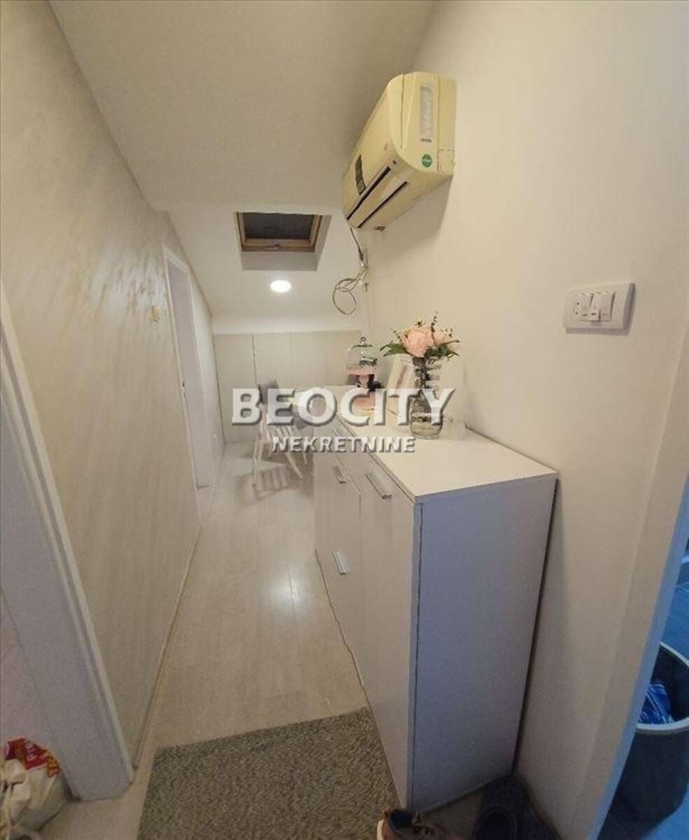 Agencijski ID: 128716, VII/, klima, lift. Prelep stan na odlicnoj lokaciji. Potkrovlje, odlicno iskoriscen prostor, renoviran 2022 godine. Napravljene dve zasebne sobe, mala trpezarija i kuhinja. Za malu kvadraturu prilicno komforno i potpuno opremljeno kupatilo. Topla voda i cg, interfon i internet, klima uredjaj. Troskovi oko 100 eura u zavisnosti koliko struje se potrosi. Lift i dva velika parkinga ispred i iza zgrade. Stara vojna zgrada odlicno odrzavana. Retko smo boravili u njemu, prvi put ide na izdavanje. Moze se izdati namesten ili polunamesten. Ugradni ormani i kuhinja nova i po meri. Maksi je odmah blizu kao i vise linija gradskog prevoza, skola, vrtic... Obavezan depozit u visini jedne kirije. Vise informacija na: www.beocitynekretnine.rs Agencijska provizija 50% od jedne zakupnine. Telefoni: 060/555-3901 011/328-... Prikaži broj . Kontakt van radnog vremena: kancelarija@beocitynekretnine.rs