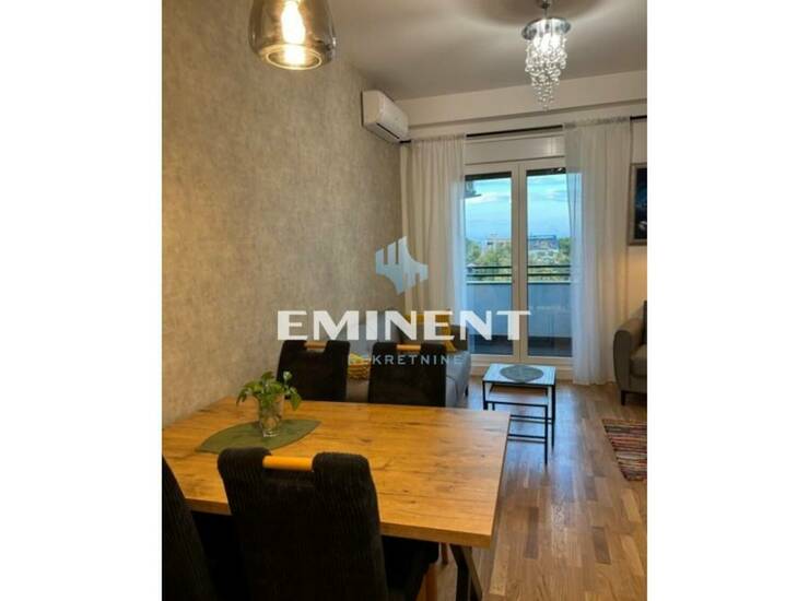 Jako lepo sređen nov stan u zgradi useljenoj 2025. godine, potpuno opremljen, funkcionalan, odvojena spavaća soba, podno grejanje, mogućnost zakupa garažnog mesta uz doplatu 100 eur.