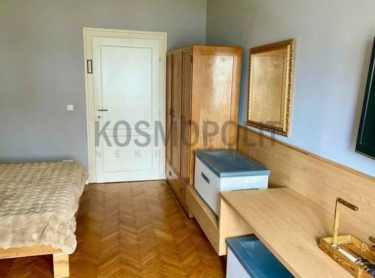 Retko u ponudi: trosoban salonac na najlepšoj zemunskoj lokaciji - Keju oslobođenja preko puta restorana Venecija". Stan je kompletno renoviran i moderno dizajniran, tako da nudi jedinstven spoj udobnosti i luksuza: iz prostranog ulaznog hodnika prelazi se u open space" dnevni boravak sa kuhinjom i trpezarijom (koji izlaze na terasu orijentisanu prema Dunavu); uz veliku spavaću sobu na raspolaganju je veliko kupatilo; manja spavaća soba sa svojim kupatilom i lođom koja gleda ka unutrašnjem dvorištu i garderoberom čini zasebnu funkcionalnu celinu. U kuhinji je instalirana vrhunska bela tehnika (Miele), a ugođaj u dnevnom boravku daje najsavremenija elektronika, dva televizora (jedan je u većoj spavaćoj sobi) i stereo uređaj, grejanje i hlađenje obezbeđuju tri inverter klime i panelni radijatori. Uzimajući u obzir visoku klasu stana, troškovi su vrlo umereni: računi za struju u grejnoj sezoni ne prelaze 100 eur, (van sezone do 4000 dinara) infostan je oko 4000 dinara. U blizini uvek ima dovoljno mesta za parkiranje. Dozvoljeni su kućni ljubimci. Izdaje se na period od najmanje godinu dana. Plaćanje je mesečno, uz obavezan depozit. Useljivo odmah. GREJANJE - Etažno, sprat 1/2, TERASA, SALONAC, INTERFON, VIDEO NADZOR ID oglasa: 76819. Agencijska provizija 50% od prve zakupnine.