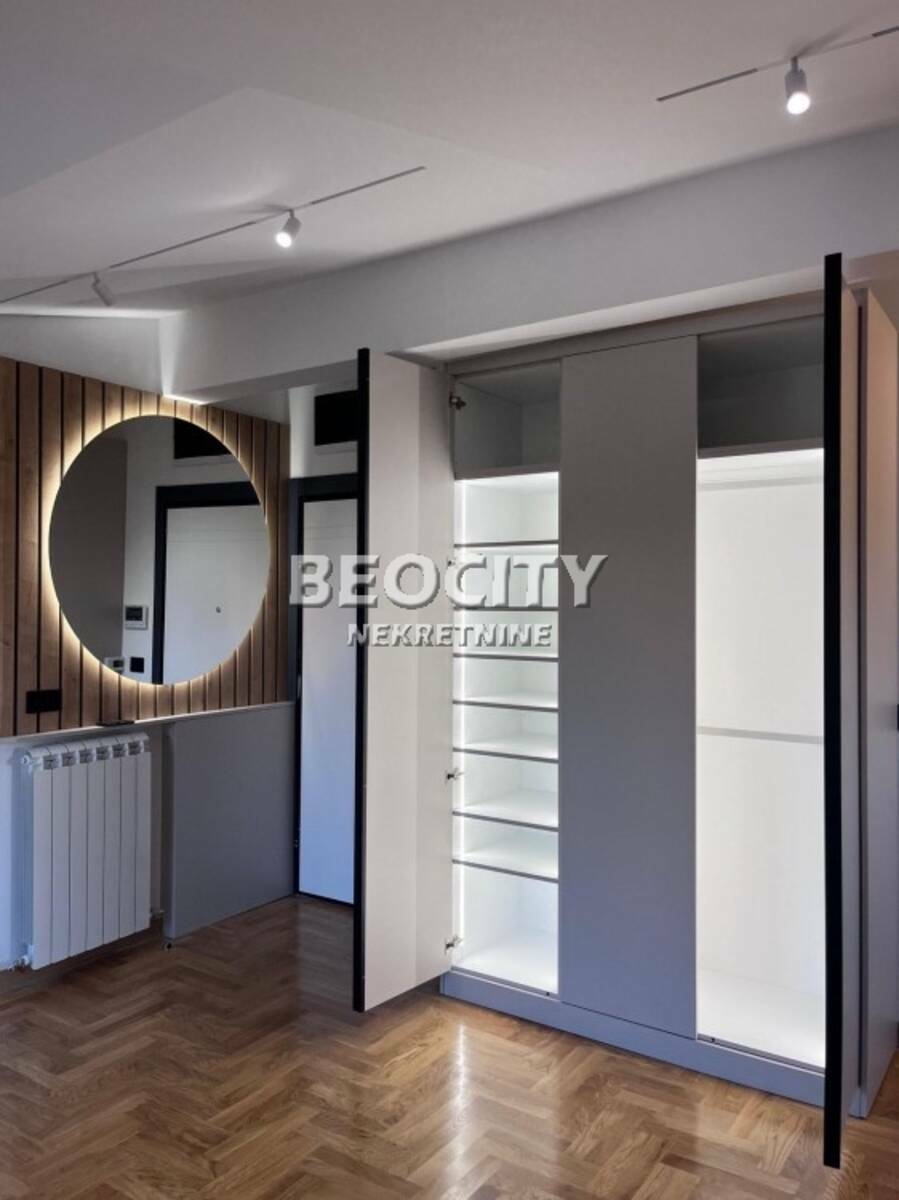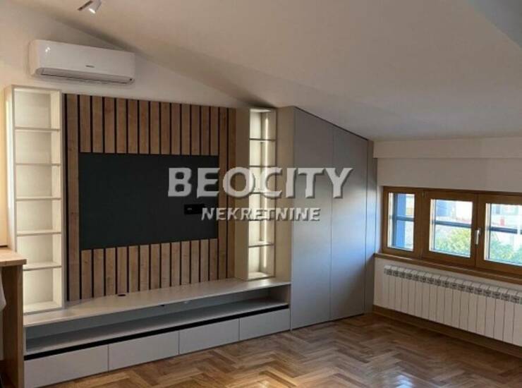 Stan je kompletno i pazljivo opremljen visokokvalitetnim materijalima. Stolarija je drvo-aluminijum sa troslojnim staklima punjenim argonom, sto pruza odlicnu toplotnu i zvucnu izolaciju. Podove krasi vrhunski hrastov parket, dok su keramika i sanitarije italijanske i spanske proizvodnje, prvoklasnog kvaliteta. Roletne su sa elektricnim podizacima.
