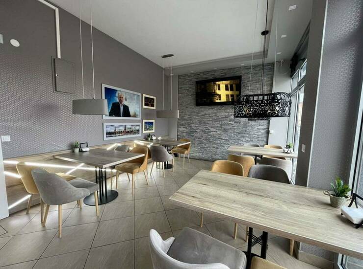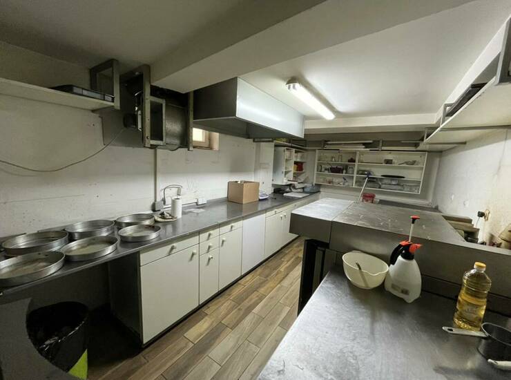 Površine 120m2, sastoji se iz prizemlja i suterenskog prostora, ima dva mokra čvora a u suterenskom prostru se nalazi magacinski prostor i kuhinja sa kompletnim inventarom računajući i peć za picu i peciva i sve ovo ulazi u cenu zakupa.