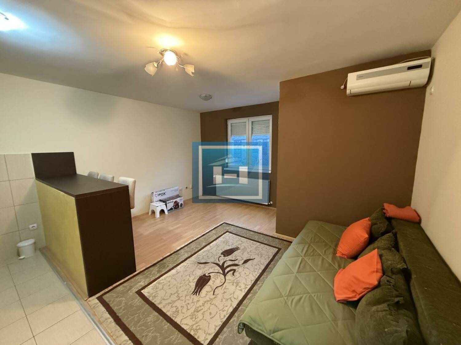Stan se sastiji od hodinka iz kojeg se ulazi u dnevni boravak sa kuhinjom i kupatila. Namešten novim stvarima , čist svetao , funkcionalan!!
