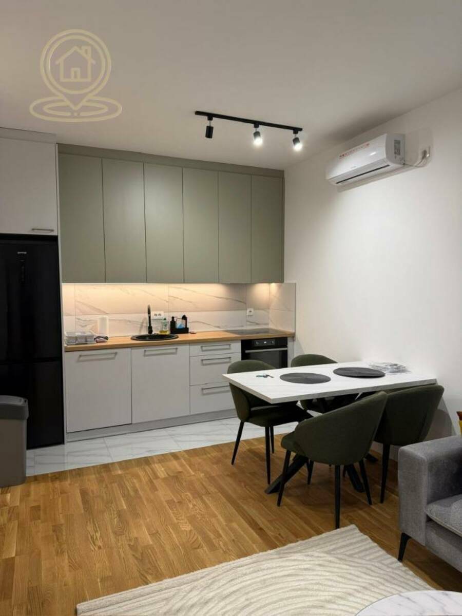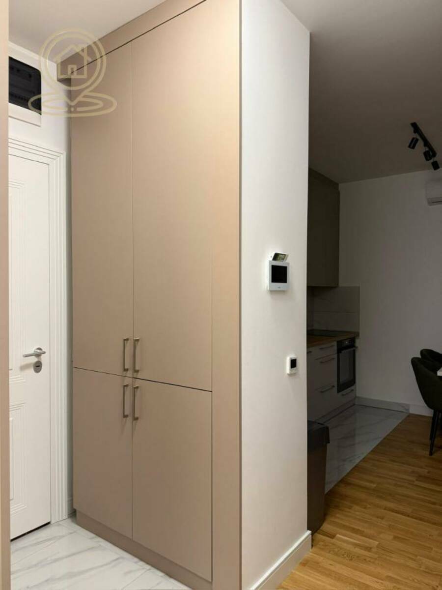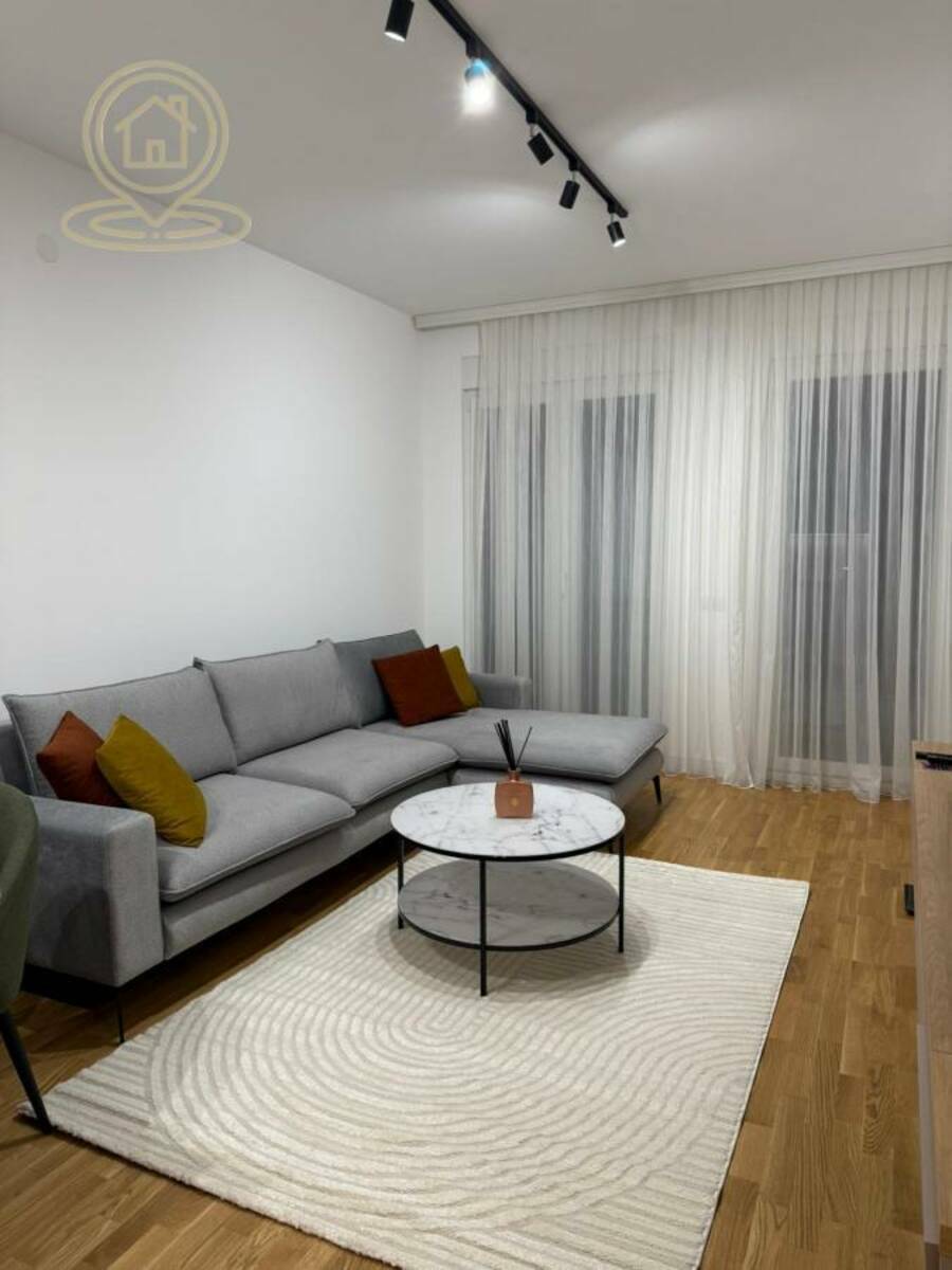 Stan je potpuno opremljen modernim nameštajem i tehnikom, ima terasu, garažno mesto i podno grejanje na gas, kao i klimu. U dvorištu zgrade nalazi se igraliste za decu.