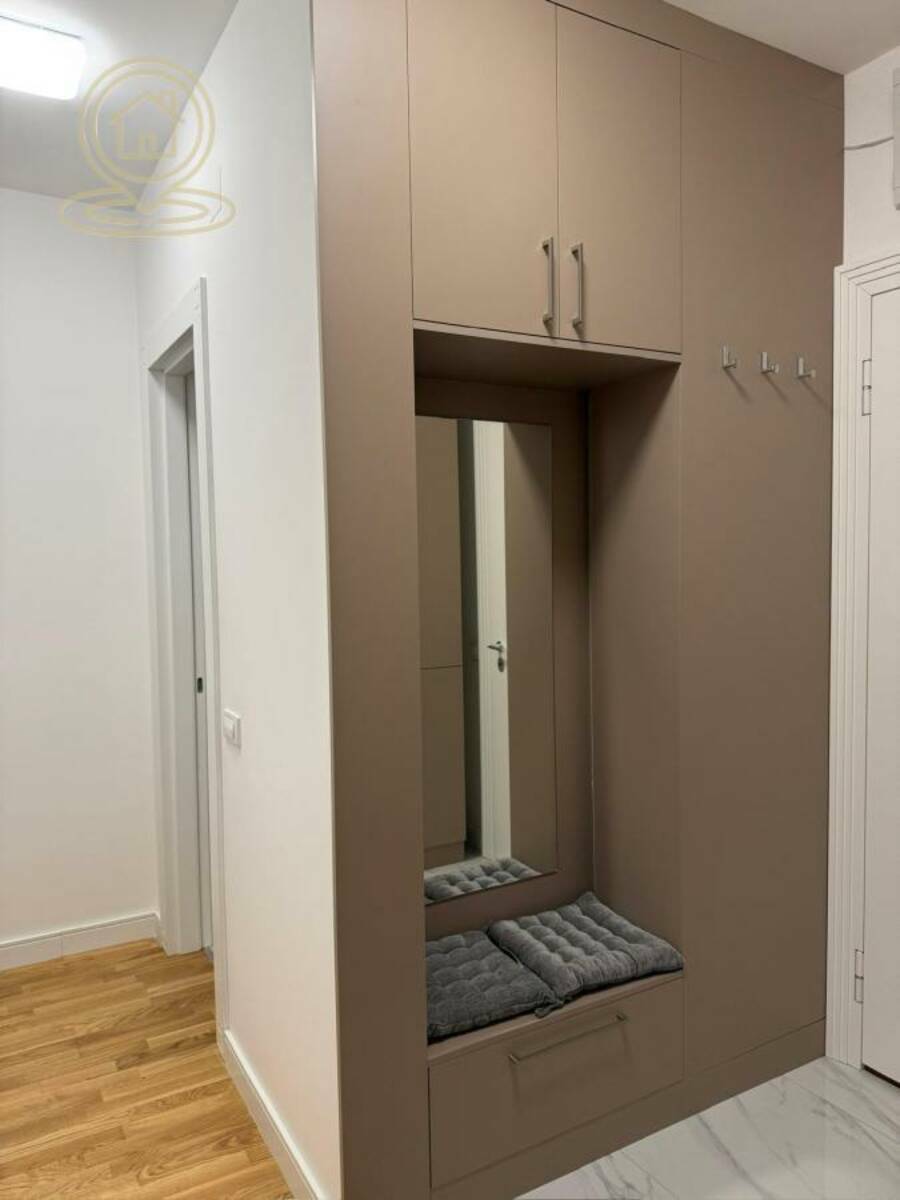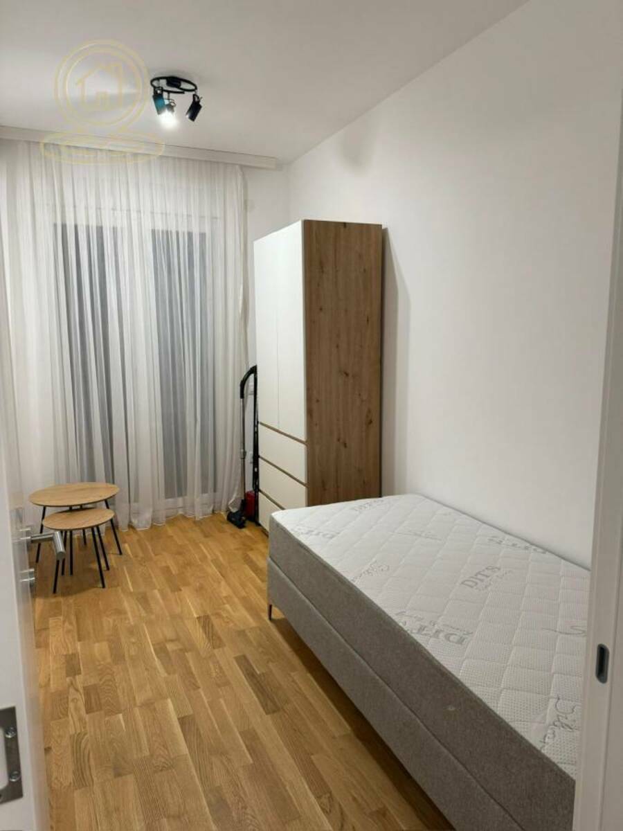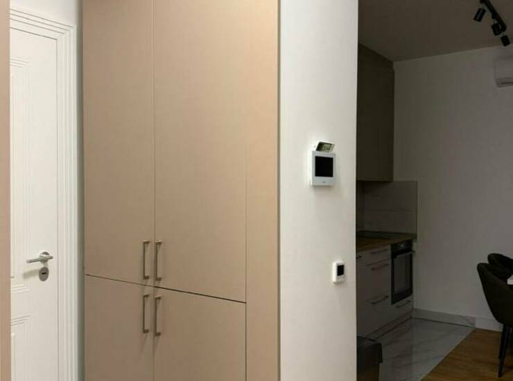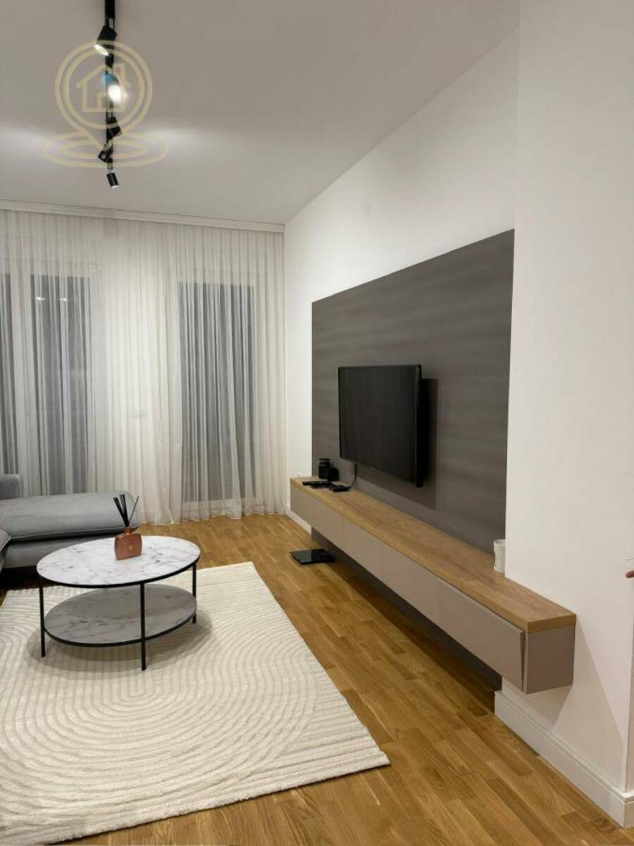 Stan je potpuno opremljen modernim nameštajem i tehnikom, ima terasu, garažno mesto i podno grejanje na gas, kao i klimu. U dvorištu zgrade nalazi se igraliste za decu.