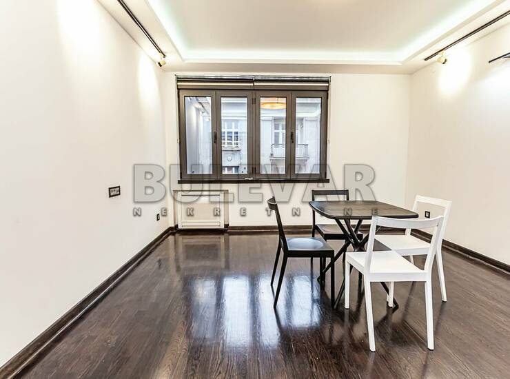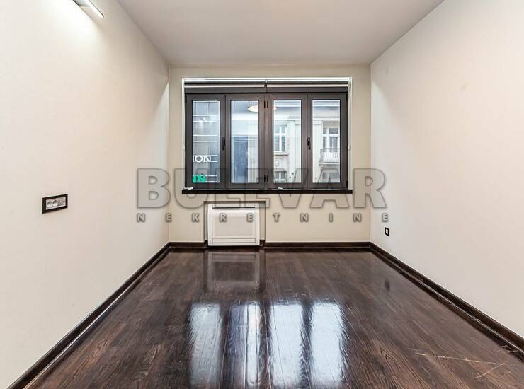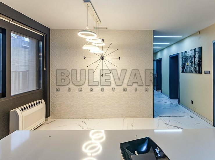 Izdaje se kompletno renoviran, polunamešten, četvorosoban stan, 85m2, na 1.spratu u zgradi bez lifta. Sastoji se iz ulaznog hola, iz kog se ulazi u trpezarijski deo sa kuhinjom (dela za odmor), tri zasebne prosorije/kancelarije, toaleta, kupatila, jedne lođe i jedne izolovane terase. Prozori su aluminijumski sa termoprekidom koji poseduju roletne sa električnim podizačima. Kuhinja koja je urađena po meri, sa svim električnim uređajima. Grejanje je etažno-podno, sistem grejanja i hlađenja su toplotne pumpe sa fenkojlerima. Izuzetno lepo osvetljen i orijentisan. Sigurnosna ulazna vrata sa vrhunskim kvalitetom i jakom otpornosti (Bosal). Ispred kojih je instaliran video nadzor. Stan je pogodan za kancelarijske delatnosti. Izdaje se ozbiljnim zakupcima na duži vremenski period. Obavezan depozit u visini jedne mesečne kirije. Agencijska usluga je 50% od prve mesečne kirije. Za više informacija javite se na telefon agencije. Ovo je samo deo naše ponude. Naša preporuka Vaš izbor! Ovu kao i druge nekretnine možete videti na našem sajtu. Čekamo Vas!