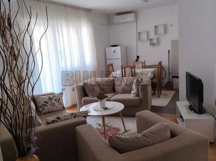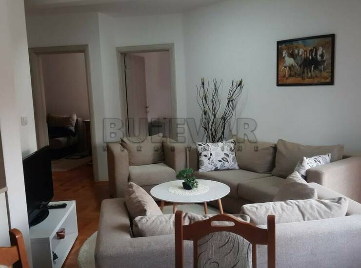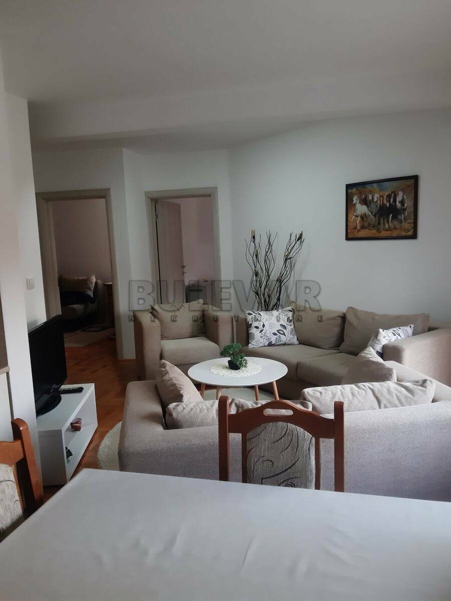 Izdaje se namešten dvoiposoban komforan stan 55 kvadrata,nova gradnja u blizini medicinskog fakulteta,novog kliničkog centra i vojne bolnice.Sastoji se od dve odvojene sobe,dnevnog boravka sa kuhinjom i trpezarijom,hodnika,kupatila i terase na koju se izlazi iz dnevnog boravka i jedne sobe,takodje stan poseduje i pripadajuću podrumsku prostoriju. Zgrada poseduje lift i interfon. Grejanje je TA. Komplet je opremljen nameštajem i svom potrebnom belom tehnikom. Lepo je osvetljen i orijentisan. Izdaje se ozbiljnim zakupcima na duži vremenski period. Obavezan depozit u visini jedne mesečne kirije.