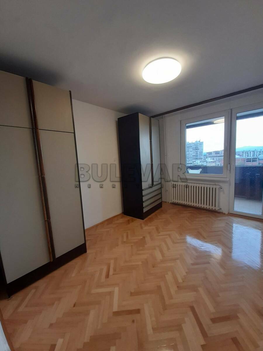 U ponudi je četvorosoban stan u centru, iza Dušanovog bazara, na desetom spratu zgrade kvalitetne gradnje, sa dva lifta. Stan je površine 91m2 i sastoji se iz ulaznog hodnika, odvojene kuhinje koja je opremljena elementima i ima izlaz na manju terasu, zatim trpezarije koja je odvojena od dnevnog boravka kliznim vratima, jedne spavaće sobe, a u nastavku iz većeg hodnika dolazi se do druge dve spavaće sobe, velike terase, kupatila i toaleta. Hodnik je opremljen ugradnim ormarima. Grejanje je centralno, ali računi nisu visoki u odnosu na kvadraturu stana. Parking je obezbeđen rampom, za stanare zgrade. U potkrovlju postoji pripadajuća ostava. Izdaje se ozbiljnim zakupcima, na minimum godinu dana. Obavezan je depozit u visini kirije, a agencijsku uslugu plaćate jednokratno 50% od visine kirije. Za više informacija i obilazak stana javite se na telefon agencije.