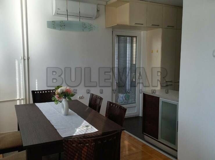 Izdaje se stan površine 51m2 na osmom spratu u zgradi sa liftom preko puta Delte. Sastoji se od ulaznog hodnika, trpezarije sa kuhinjom, dnevne sobe, spavaće sobe, kupatila i terase. Grejanje je centralno. Ima klimu. Komplet je opremljen nameštajem i svom potrebnom belom tehnikom. Ima mogućnost korišćenja parkinga oko zgrade. Lepo je osvetljen i orijentisan. U cenu je uračunato čišćenje stana dva puta mesečno. Izdaje se ozbiljnim zakupcima na duži vremenski period. Obavezan depozit u visini jedne mesečne kirije.