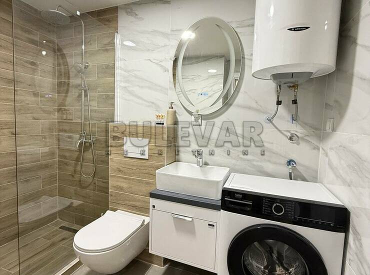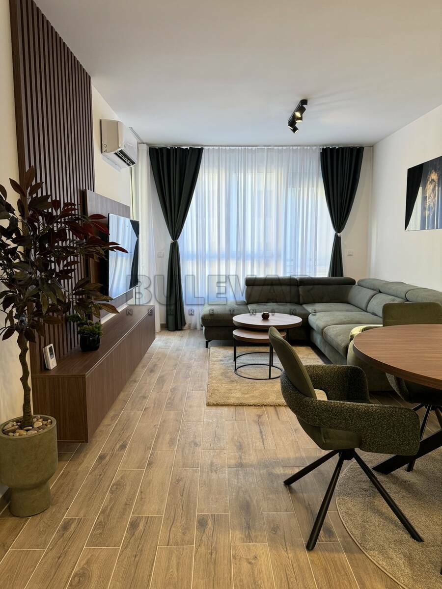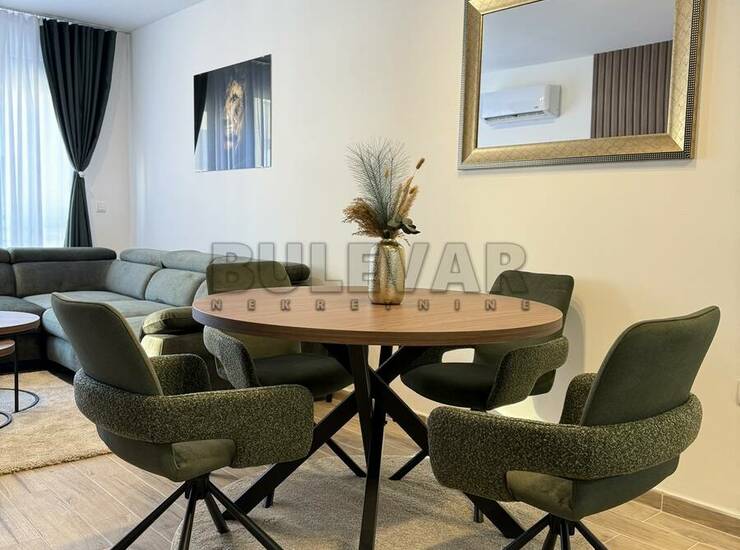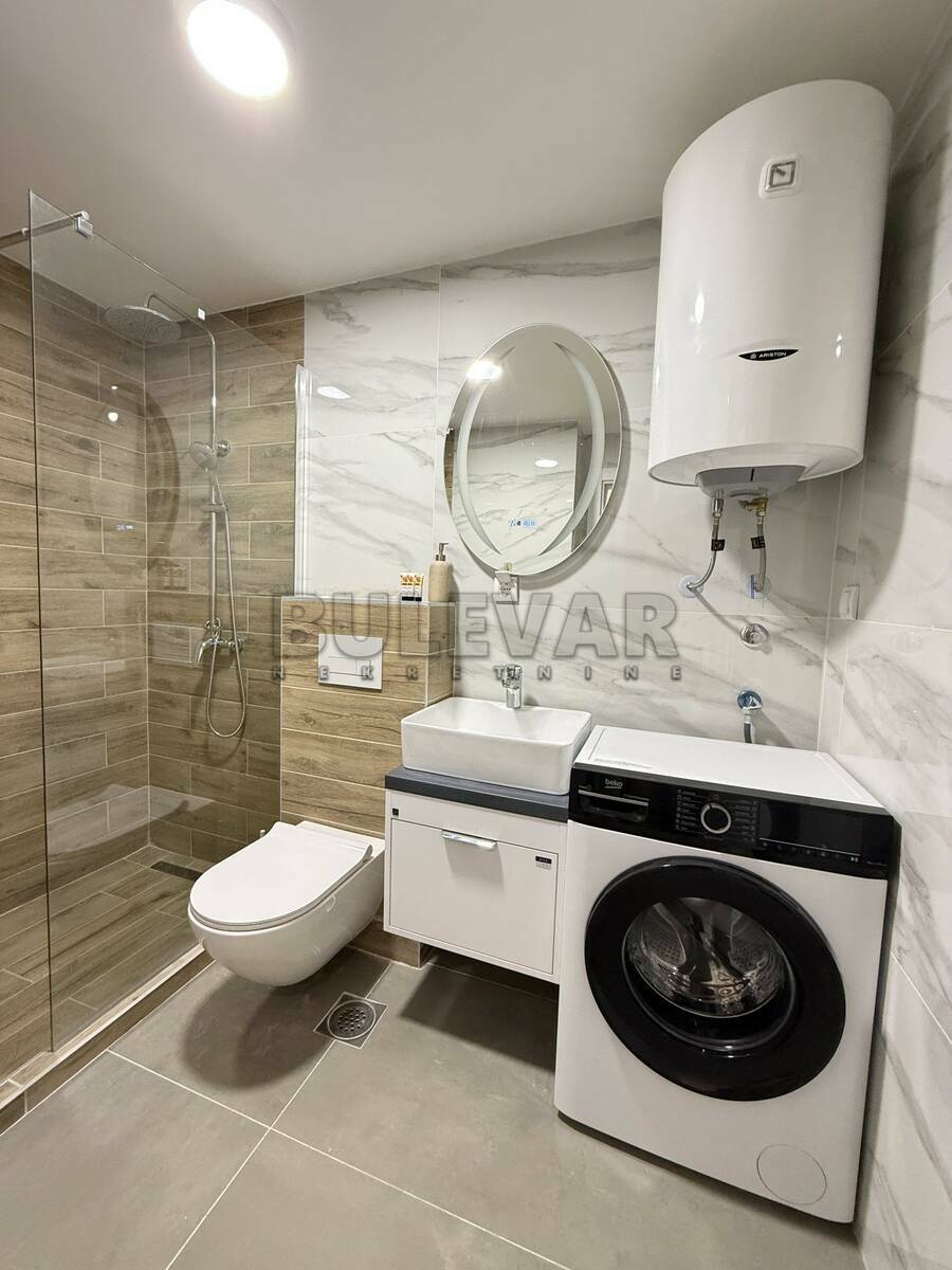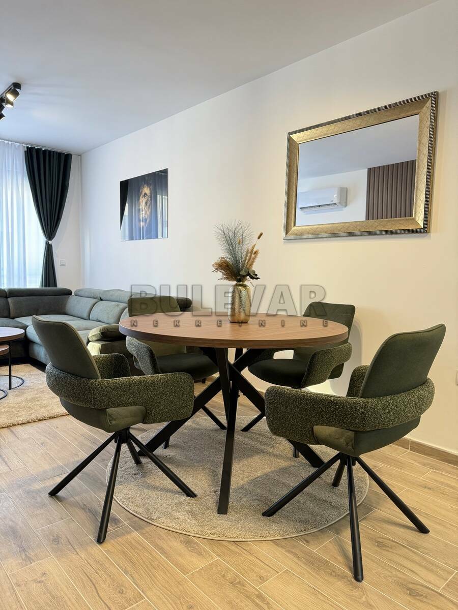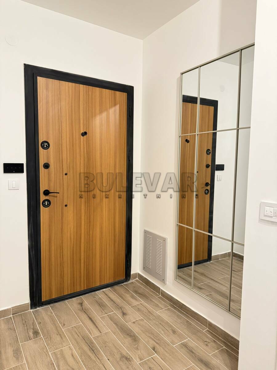 U ponudi je lux jednoiposoban neuseljavan stan, u novoj smart zgradi sa liftom, na petom spratu. Stan je površine 50m2 i sastoji se iz ulaznog hodnika, dnevnog boravka sa trpezarijom i kuhinjom, spavaće sobe i terase. Kompletno je opremljen novim nameštajem i belom tehnikom, koja je u garanciji. Grejanje je podno, etažno sa kotlom na struju, a poseduje i inverter klimu. Uz zakup stana ide i natkriveno parking mesto sa smart kapijom. Ceo stan je na smart sistemu, pa preko telefona možete upravljati greanjem, hlađenjem, kao i ostalim uređajima. Izdaje se na duži vremenski period, ozbiljnim zakupcima. Obavezan je depozit u visini mesečne kirije. Agencijsku uslugu plaćate 50% od prve kirije, jednokratno. Javite se, očekujemo Vas.