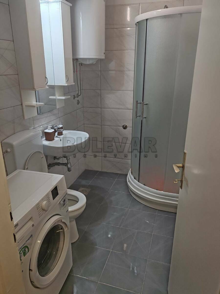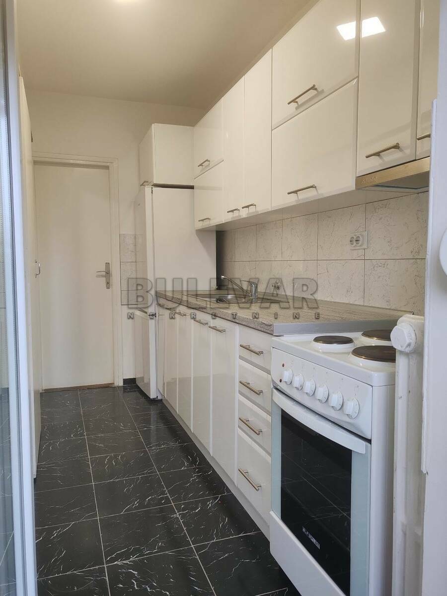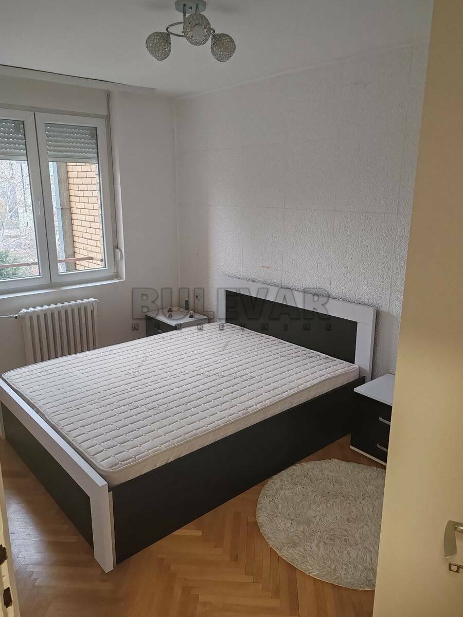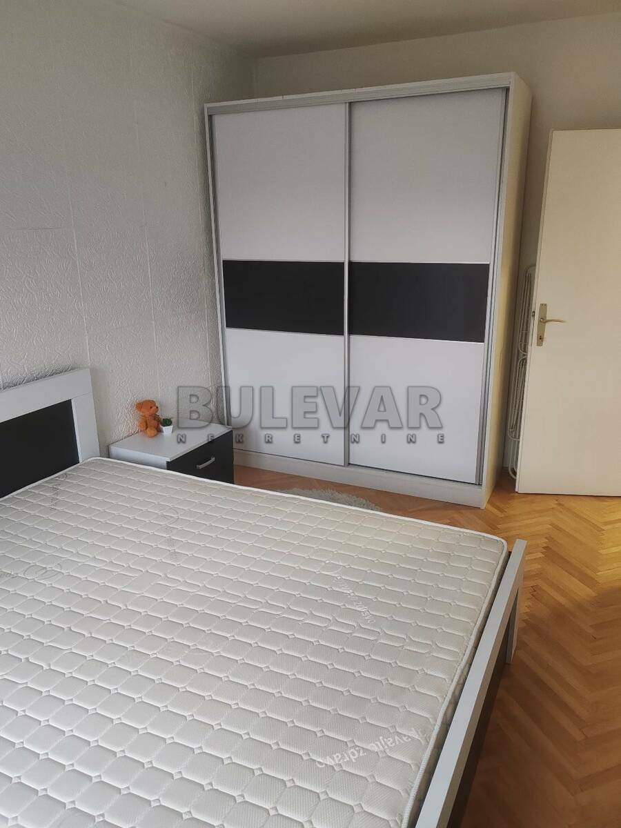 Izdaje se stan površine 55m2 na petom spratu u zgradi sa liftom. Sastoji se od ulaznog hodnika, trpezarije sa kuhinjom, dnevne sobe, spavaće sobe, kupatila i terase. Grejanje je centralno. Komplet je opremljen nameštajem i svom potrebnom belom tehnikom. Lepo je osvetljen i orijentisan. Izdaje se ozbiljnim zakupcima na duži vremenski period. Obavezan depozit u visini jedne mesečne kirije.