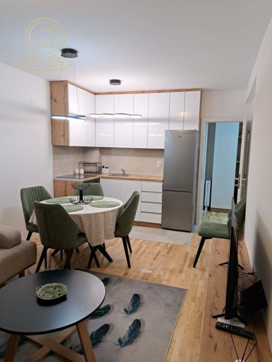 Struktura: dnevni boravak sa trpezarijom i kuhinjom, spavaća soba, moderno kupatilo i terasa. Enterijer je urađen od vrhunskih materijala, a prostor je svetao i funkcionalno raspoređen.