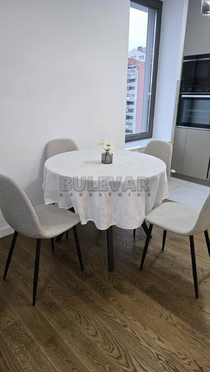 Izdaje se nov stan na Bulevaru Nemanjića, pored Delte u novom luksuznom kompleksu. Nalazi se na sedmom spratu u zgradi sa tri lifta i povšine je 83m2. Po strukturi je trosoban i sastoji se iz ulaznog dela, dnevne sobe sa trpezarijom i kuhinjom i terase od 6m2, dve spavaće sobe, kupatila i toaleta. Grejanje u stanu je centralno sa kalorimetrima, a poseduje i inverter klimu. Kompleks ima prelepo uređeno dvorište na prvom spratu, koje je na raspolaganju samo stanarima zgrade i recepciju. Uz zakup stana ide i parking mesto. Izdaje se ozbiljnim zakupcima na duži vremenski period. Obavezan je depozit u visini jedne mesečne kirije. Agencijska usluga je 50% od visine prve kirije, jednokratno. Za više informacija, kao i zakazivanje razgledanja ovog stana, javite se na telefon agencije. Ovu, kao i druge nekretnine možete pogledati na našem sajtu. Čekamo Vas!