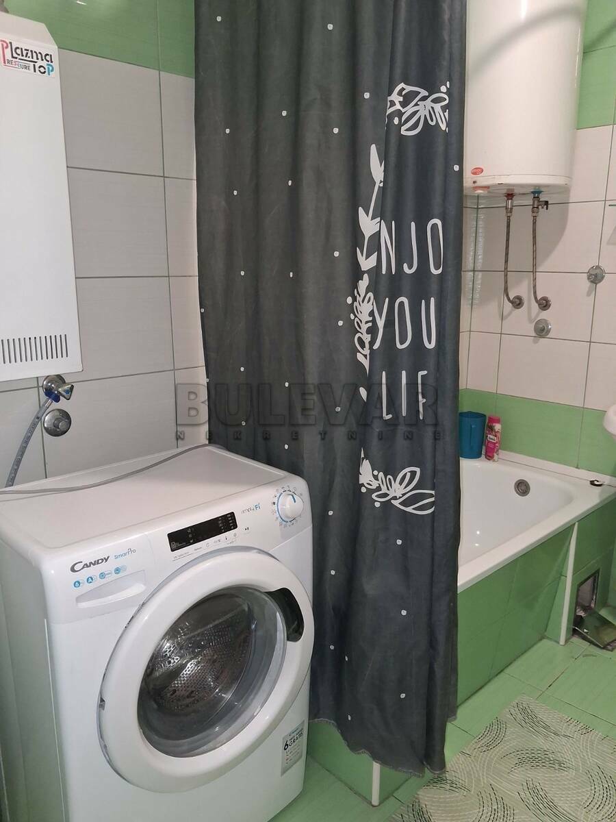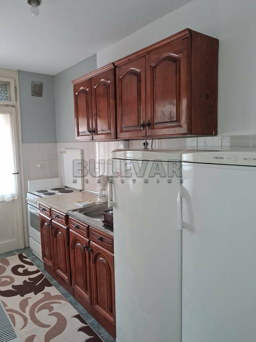 Izdaje se stan površine 55m2 na prvom spratu u zgradi bez lifta. Sastoji se od ulaznog hodnika, kuhinje, trpezarije, dnevne sobe, spavaće sobe, kupatila i terase. Grejanje je na struju /TA, klima ili električni kotao - ekonomično i po sopstvenoj kontroli. Komplet je opremljen nameštajem i svom potrebnom belom tehnikom. Lepo je osvetljen i orijentisan. Izdaje se ozbiljnim zakupcima na duži vremenski period. Obavezan depozit u visini jedne mesečne kirije.