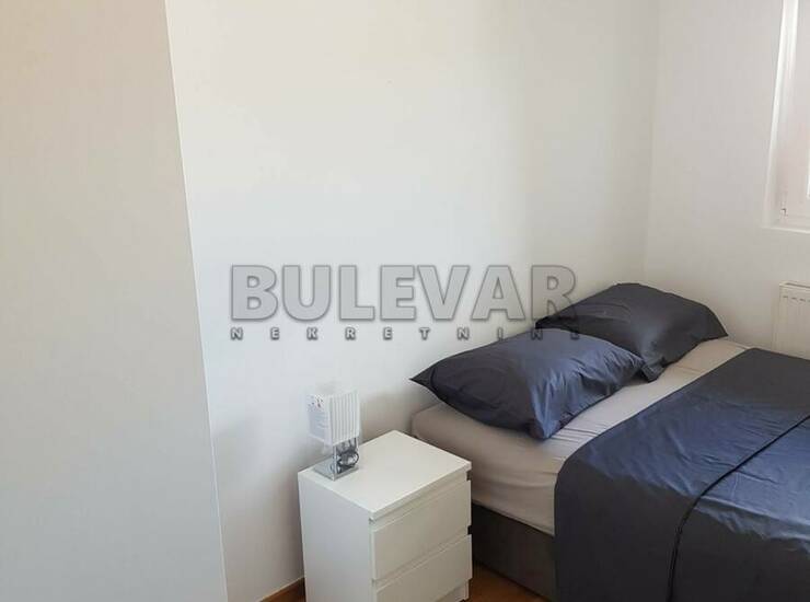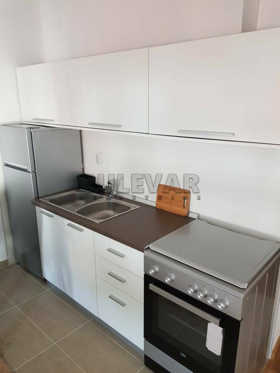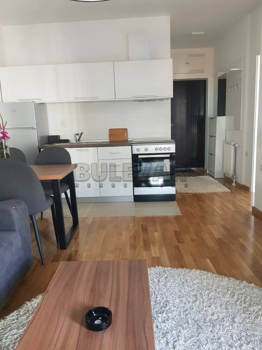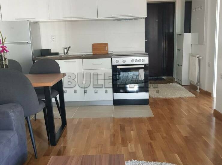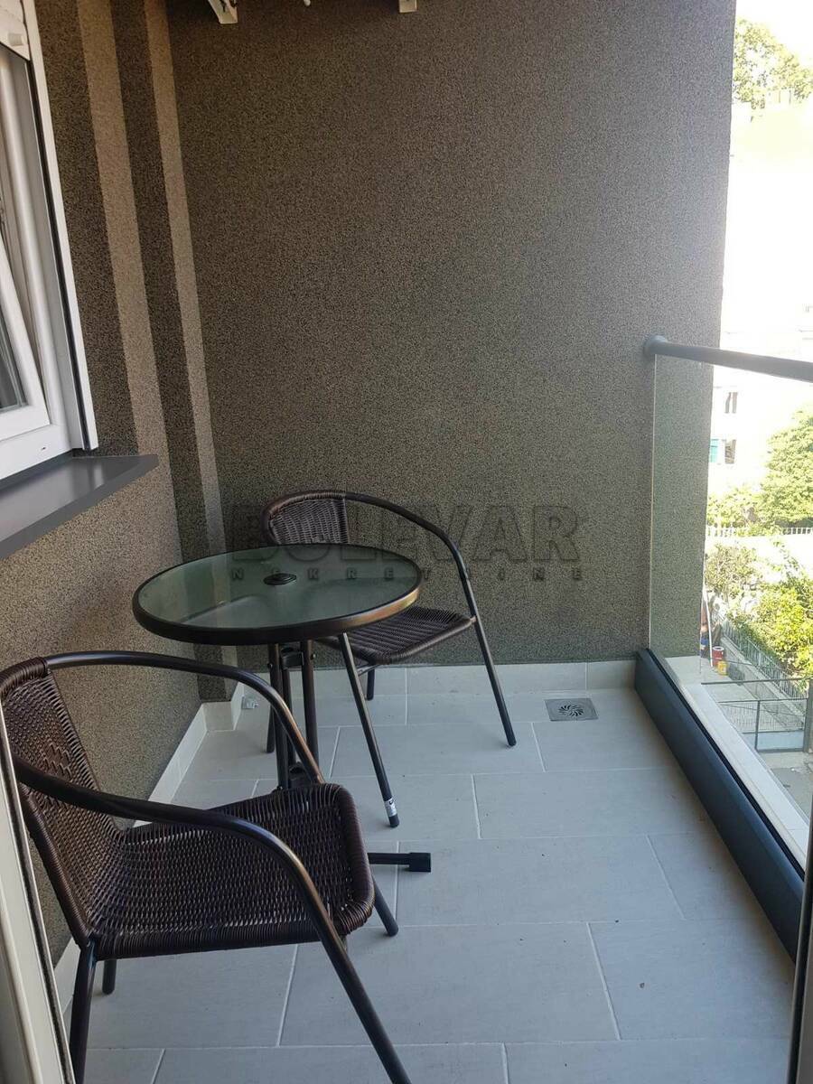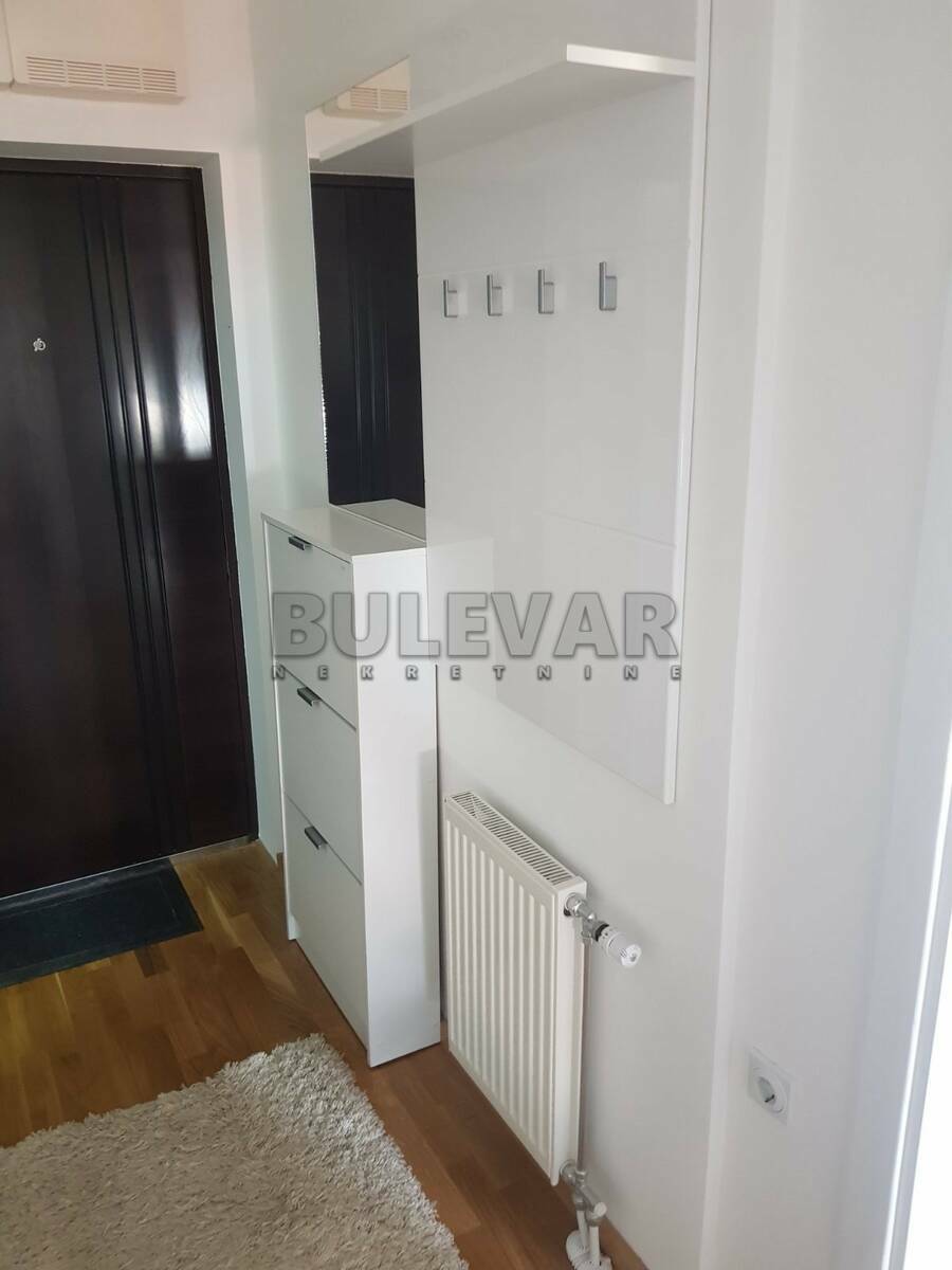 Izdaje se stan površine 36m2 na trećem spratu u zgradi sa liftom. Sastoji se od ulaznog hodnika, trpezarije sa kuhinjom, dnevne sobe, spavaće sobe, kupatila i terase. Grejanje je centralno. Komplet je opremljen nameštajem i svom potrebnom belom tehnikom. Lepo je osvetljen i orijentisan. Ima svoje garažno mesto u podzemnoj garaži i podrum. Izdaje se ozbiljnim zakupcima na duži vremenski period. Obavezan depozit u visini jedne mesečne kirije.