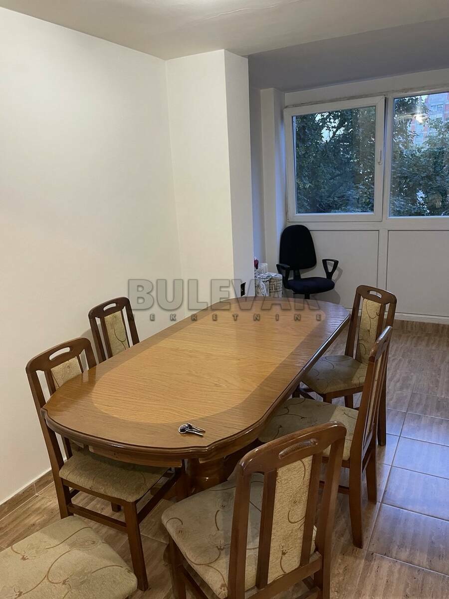 Izdaje se stan površine 53m2 na trećem spratu u zgradi sa liftom. Sastoji se od ulaznog hodnika, trpezarije sa kuhinjom, dnevne sobe, spavaće sobe, kupatila i terase. Grejanje je centralno. Ima klimu. Komplet je opremljen nameštajem i svom potrebnom belom tehnikom. Lepo je osvetljen i orijentisan. Izdaje se ozbiljnim zakupcima na duži vremenski period. Obavezan depozit u visini jedne mesečne kirije.
