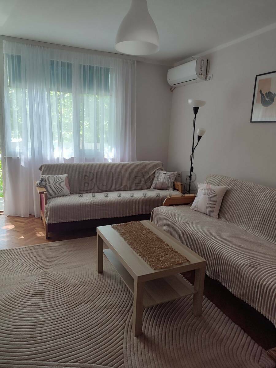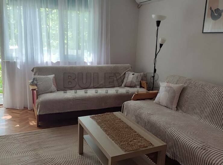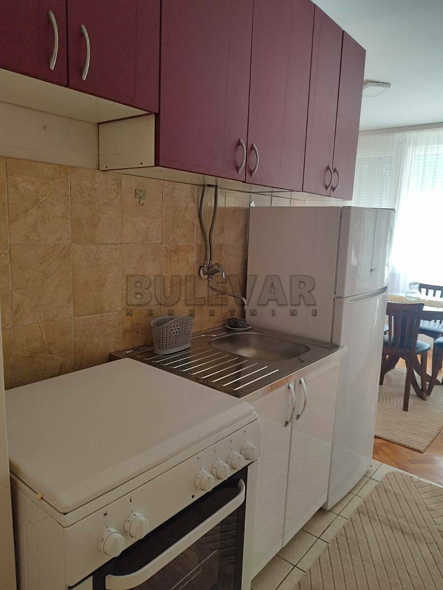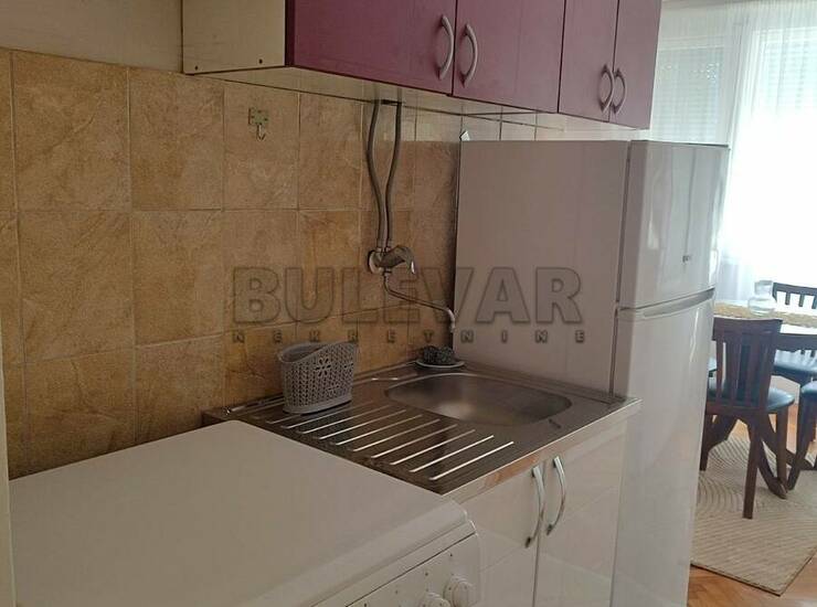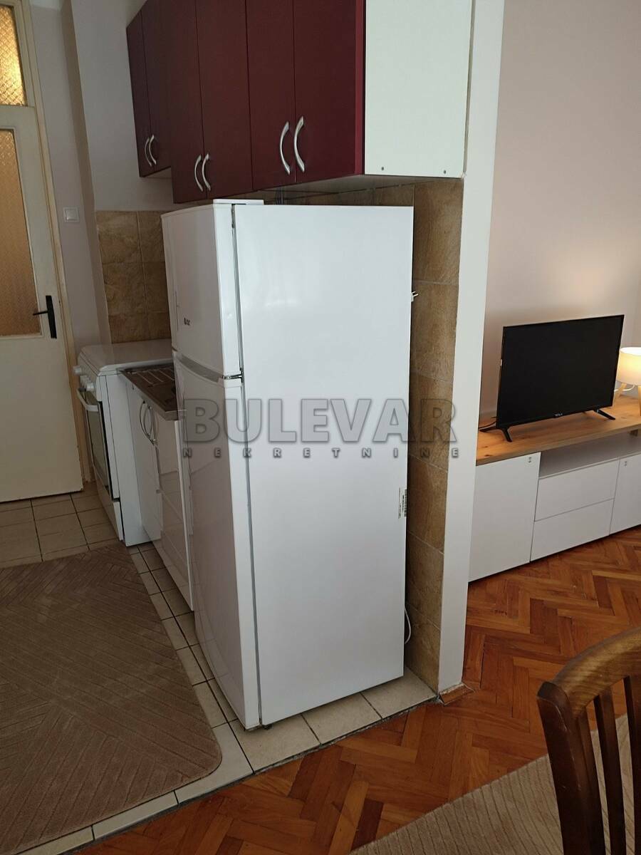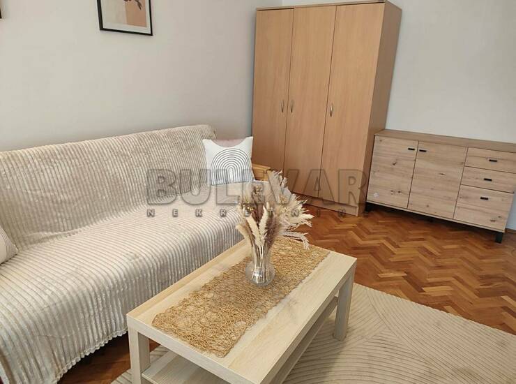 Izdaje se jednosoban stan površine 45m2 na prvom spratu u zgradi sa liftom u blizini OŠ Sveti Sava.Sastoji se od ulaznog hodnika, trpezarije sa kuhinjom, dnevne sobe, spavaće sobe, kupatila i lođe.Grejanje je na struju TA.Komplet je opremljen nameštajem i svom potrebnom belom tehnikom. Lepo je osvetljen i orijentisan. Izdaje se ozbiljnim zakupcima na duži vremenski period.Obavezan depozit u visini jedne mesečne kirije.