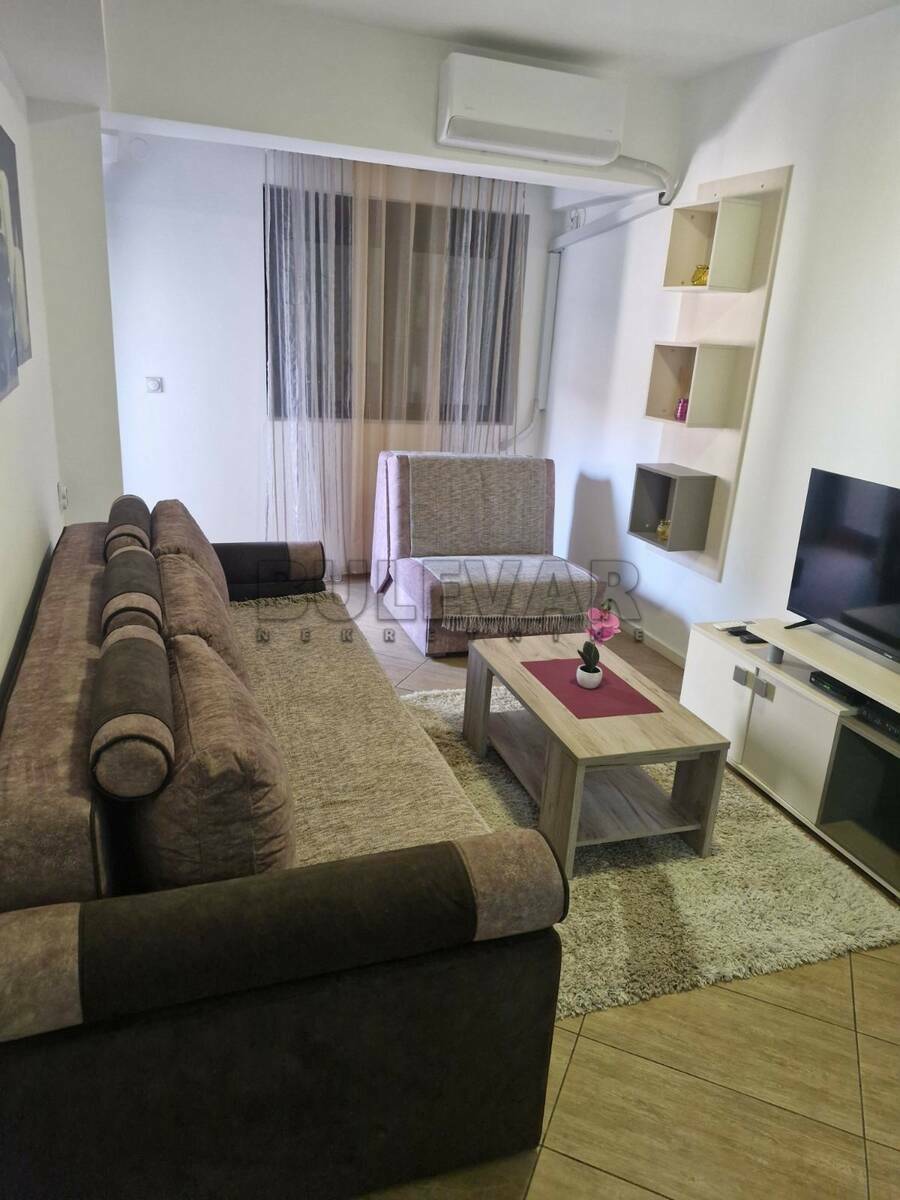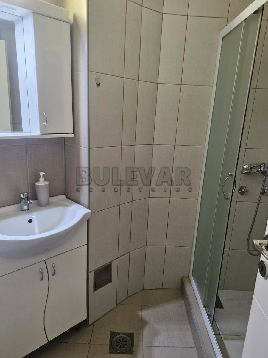 Izdaje se stan površine 44m2 na prvom spratu u zgradi sa liftom. Sastoji se od ulaznog hodnika, trpezarije sa kuhinjom, dnevne sobe, spavaće sobe, kupatila i terase. Grejanje je etažno podno. Komplet je opremljen nameštajem i svom potrebnom belom tehnikom.Lepo je osvetljen i orijentisan. Izdaje se ozbiljnim zakupcima na duži vremenski period. Obavezan depozit u visini jedne mesečne kirije.