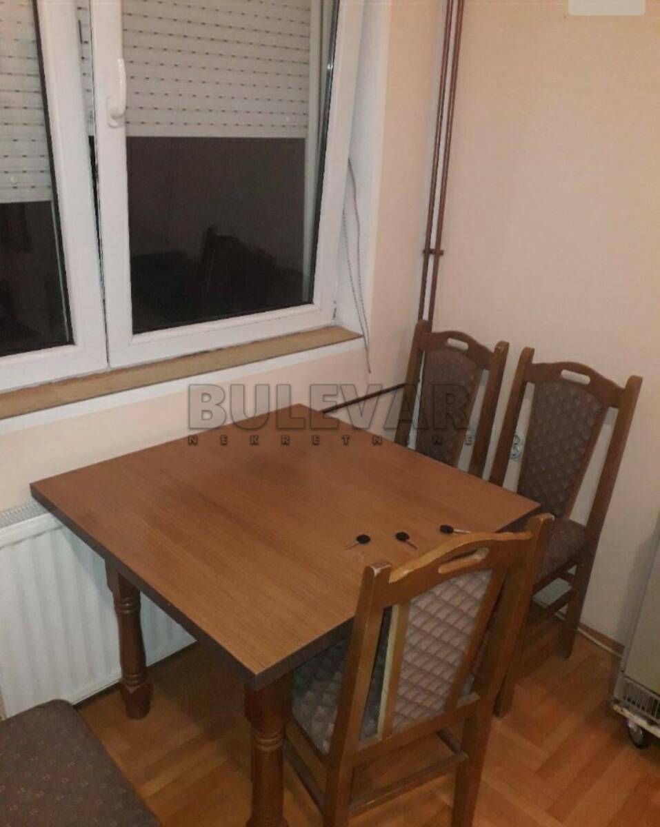 Izdaje se jednosoban stan kod Dif-a, na petom spratu u stambenoj zgradi bez lifta. Površina stana je 28 m2. Stan je sređen i opremljen potrebnim nameštajem i električnim uređajima. Sastoji od ulaznog hodnika, dnevnog boravka, kuhinje sa trpezarijom i kupatila. Poseduje i lepu terasu. Stan je lepo orjentisan i osvetljen. Grejanje u stanu je na struju / TA peć/. Zgrada se nalazi na pristupačnoj lokaciji pa će zakupcima u neposrednom okruženju na raspolaganju biti svi objekti od značaja za svakodnevni život. Izdaje se ozbiljnim zakupcima na duži vremenski period. Obavezan depozit u visini jedne mesečne kirije.