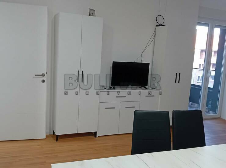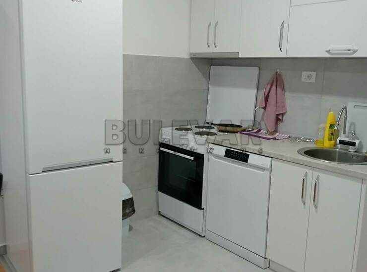 Izdaje se stan površine 48m2 na šestom spratu u zgradi sa liftom. Sastoji se od ulaznog hodnika, trpezarije sa kuhinjom, dnevne sobe, spavaće sobe, kupatila i terase. Grejanje je na struju. Komplet je opremljen nameštajem i svom potrebnom belom tehnikom. Lepo je osvetljen i orijentisan. Izdaje se ozbiljnim zakupcima na duži vremenski period. Obavezan depozit u visini jedne mesečne kirije.