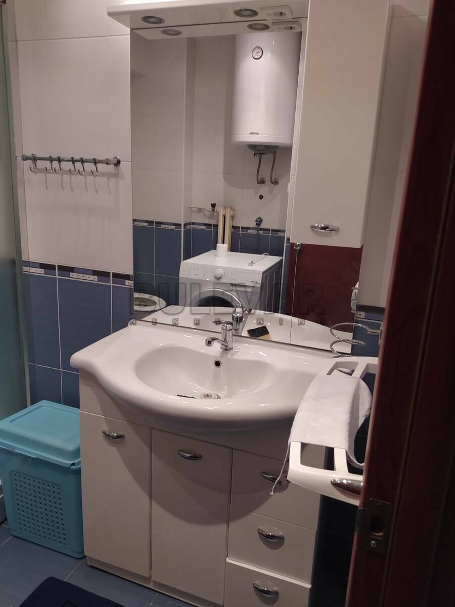 Izdaje se trosoban stan površine 80m2, u blizini Pravnog i Ekonomskog fakulteta na devetom spratu u zgradi sa liftom. Sastoji se od ulaznog hodnika, trpezarije sa kuhinjom, dnevne sobe, dve spavaće sobe, kupatila, toaleta i dve terase.Grejanje je centralno. Moguće je držanje kućnih ljubimaca. Ima mogućnost korišćenja parkinga u okruženju zgrade. Lepo je osvetljen i orijentisan. Opremljen je potrebnom tehnikom i nameštajem. Zbog okruženja i lokacije pogodan je za porodice, mlade bračne parove, zaposlene, studente…