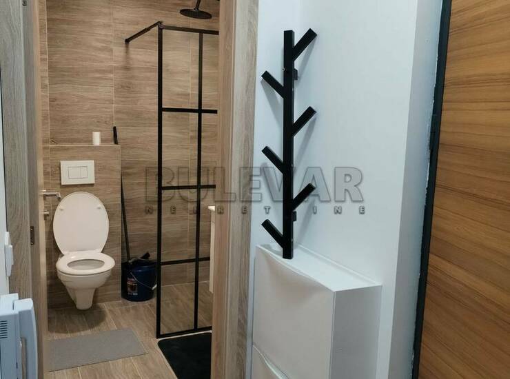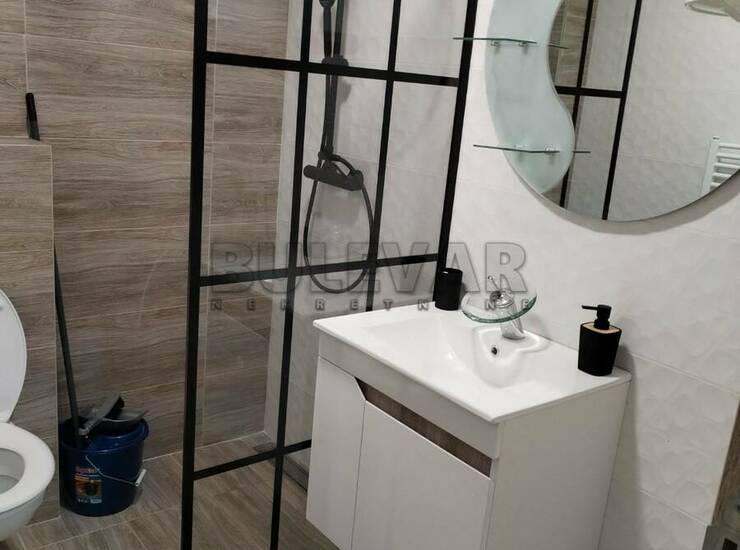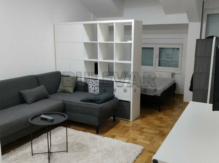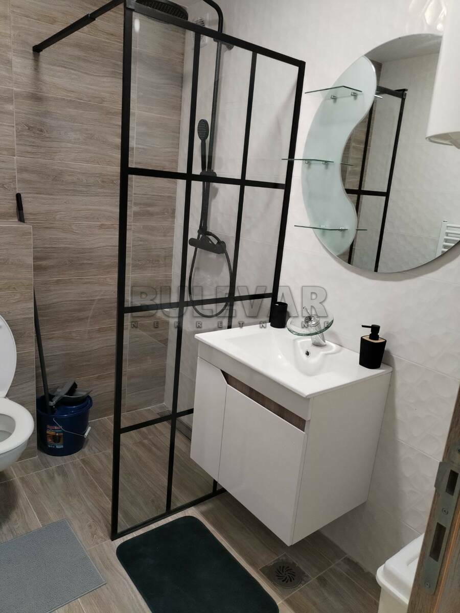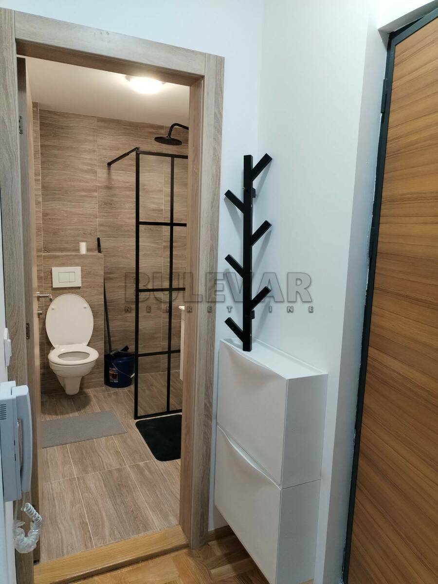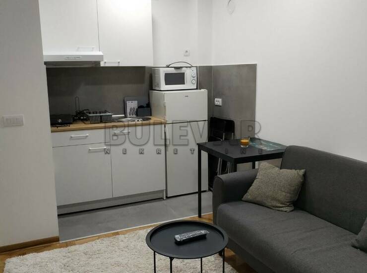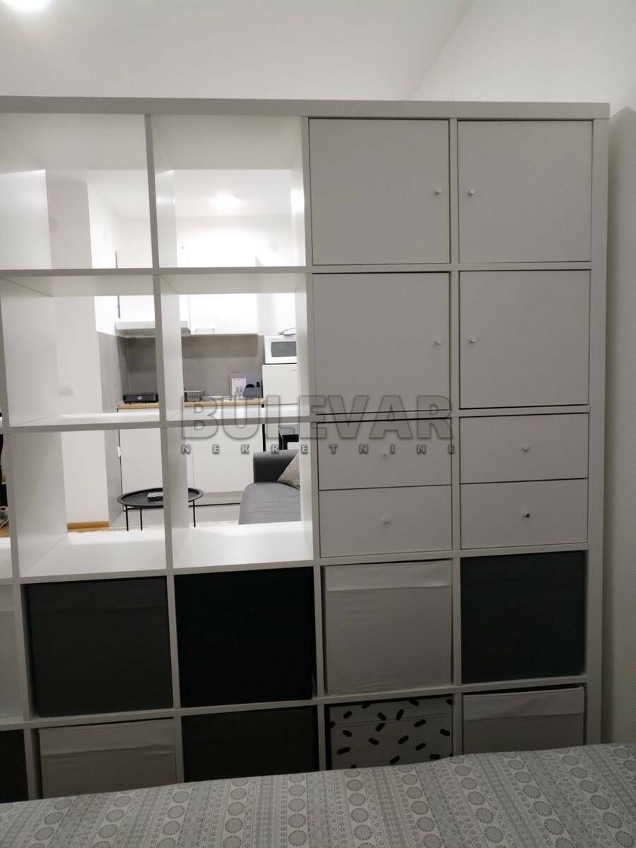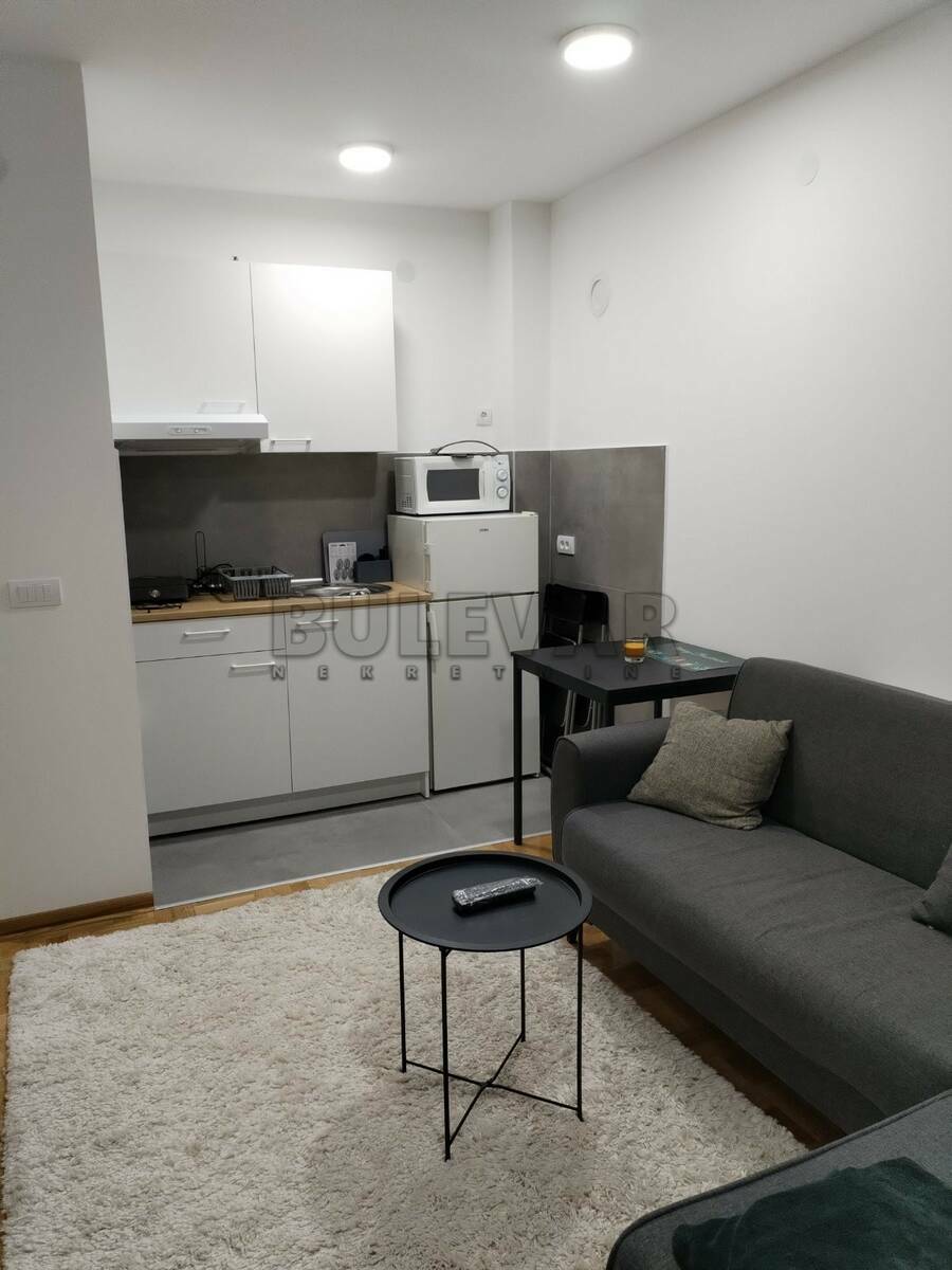 Izdaje se nov stan površine 29m2 na trećem spratu u zgradi sa liftom. Sastoji se od ulaznog hodnika, kuhinjskog dela, jedne višenamenske prostorije, kupatila i terase. Grejanje je etažno sa kotlom na struju koji se nalazi u stanu. Ima klimu. Komplet je opremljen novim nameštajem i svom potrebnom novom belom tehnikom i neuseljavan do sada. Ima mogućnost korišćenja parkinga i podruma. Lepo je osvetljen i orijentisan. Izdaje se ozbiljnim zakupcima na duži vremenski period. Obavezan depozit u visini jedne mesečne kirije.