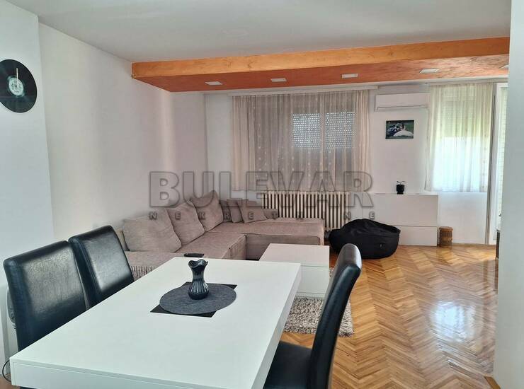 Izdaje se lep i komforan stan u mirnom delu grada. Kompletno je opremljen nameštajem i tehnikom (Nova veš mašina i nova mašina za pranje sudova). Sastoji se od hodnika, dnevnog boravka sa trpezarijom i kuhinjom, spavaće sobe, kupatila i velike terase (lodje). Zgrada nije do ulice i okružena je zelenom površinom, parkom za decu, terenima za sport. U blizini se nalazi osnovna škola Stefan Nemanja, nekoliko dečijih mobilijara i terena, par većih supermarketa i Lidl. Zgrada ima dva redovno održavana lifta (manji i veći) i poseduje interfon. Iza zgrade je veliki parking koji je uvek dostupan. Lepo je osvetljen i orijentisan. Izdaje se ozbiljnim zakupcima na duži vremenski period. Obavezan depozit u visini jedne mesečne kirije.