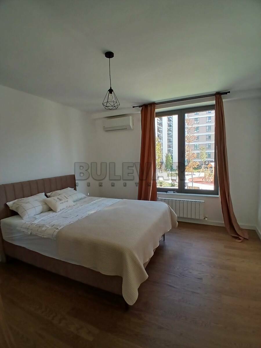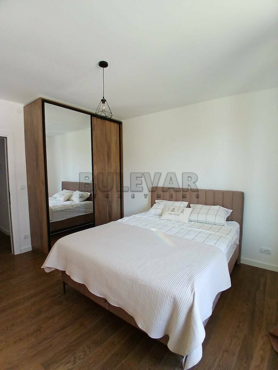 Izdaje se nov, lux, stan na Bulevaru Nemanjića, pored Delte u novom luksuznom kompleksu. Nalazi se na drugom spratu u zgradi sa tri lifta i površine je 76m2. Po strukturi je dvoiposoban i sastoji se iz ulaznog hodnika, dnevnog boravka sa trpezarijom i kuhinjom i izlazom na terasu, koja je sa pogledom na dvorište, zatim spavaće sobe opremljene francuskim ležajem, još jedne spavaće sobe koja se može opremiti prema potrebama zakupca, kupatila i toaleta, a uz zakup stana ide i garažno mesto u podzemnoj garaži, do koje ide lift. U hodniku je i ostava sa mašinama za sušenje i pranje veša. Opremljen je vrlo kvalitetnim nameštajem. Grejanje u stanu je na inverter klime. Stan poseduje ugovornu obavezu za internet i kablovsku. Kompleks ima prelepo uređeno dvorište na prvom spratu, koje je na raspolaganju samo stanarima zgrade, recepciju i Wellness spa centar. Izdaje se ozbiljnim zakupcima na duži vremenski period. Obavezan je depozit u visini jedne mesečne kirije. Agencijska usluga je 50% jednokratno. Za više informacija, kao i zakazivanje razgledanja ovog stana, javite se na telefon agencije. Ovu, kao i druge nekretnine možete pogledati na našem sajtu. Čekamo Vas!