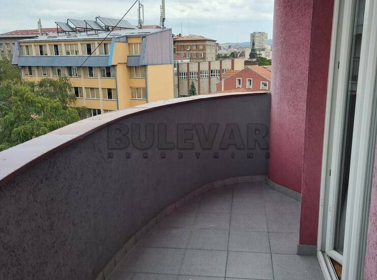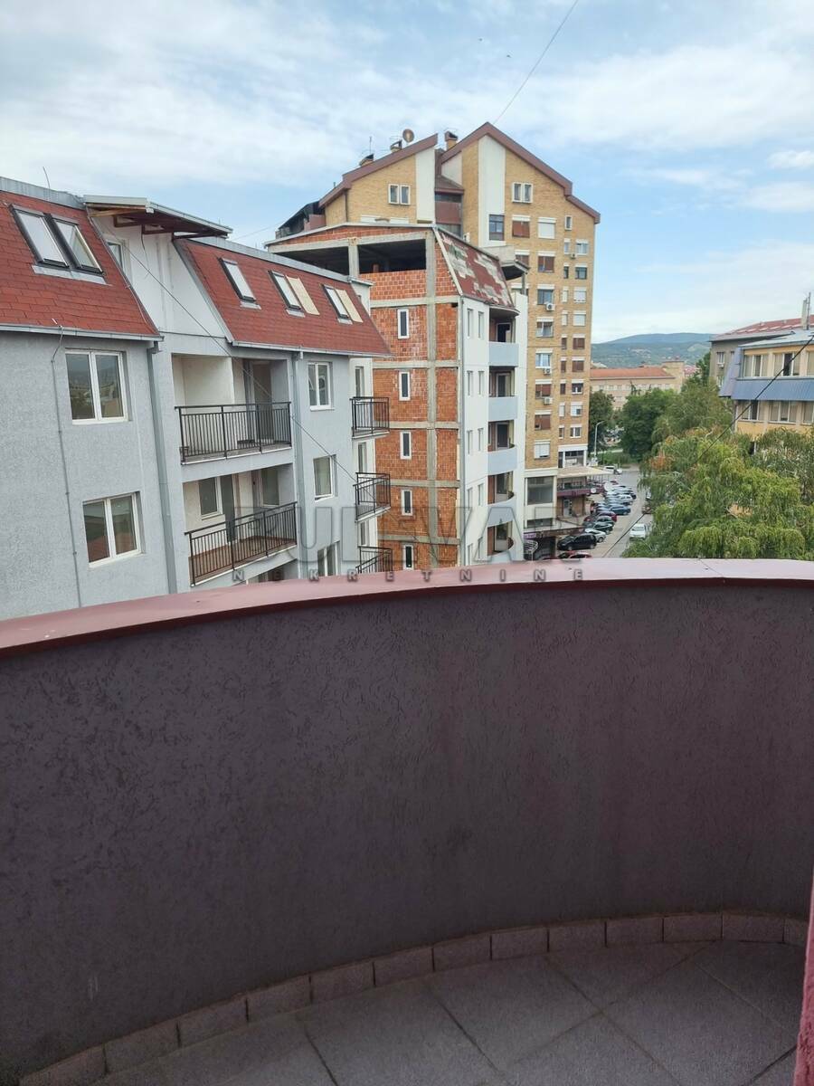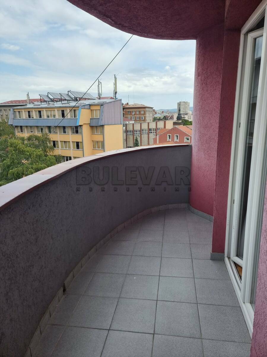 Izdaje se trosoban stan površine 72m2 na petom spratu u zgradi sa liftom u blizini centra grada.Sastoji se od ulaznog hodnika, trpezarije sa kuhinjom, dnevne sobe, dve spavaće sobe, kupatila i terase.Grejanje je na struju /TA, inverter klima, norveški radijatori/.Komplet je opremljen nameštajem i svom potrebnom belom tehnikom. Lepo je osvetljen i orijentisan. Zbog okruženja i lokacije pogodan je za porodice, mlade bračne parove, zaposlene, studente…Stan je odmah useljiv.Obavezan depozit u visini jedne mesečne kirije.