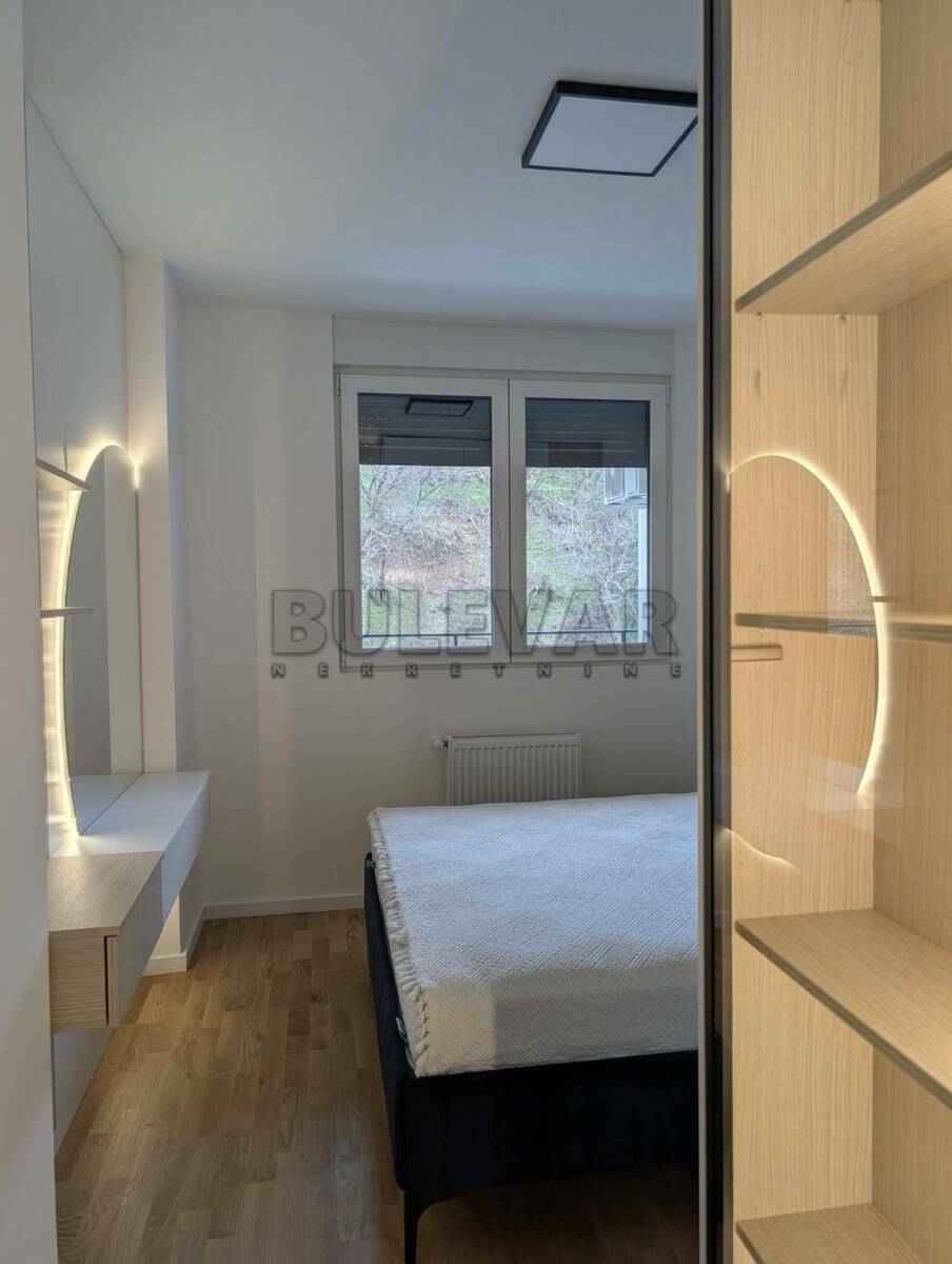 Izdaje se luksuzno opremljen jednoiposoban stan kod Sv.Nikolske crkve i Čairske pekare na Paliluli, u zgradi novije gradnje sa liftom na četvrtom i poslednjem spratu, površine 45m2 sa grejanjem na struju (etažno grejanje sa posebnim kotlom na struju i inverter klima). Stan se sastoji iz hodnika, dnevne sobe sa trpezarijom i kuhinjom, terase, spavaće sobe sa francuskim ležajem i kupatila sa veš mašinom. Do sada ne useljavan luksuzan stan dostupan odmah! Uz zakup stana sleduje i posebno parking mesto u dvorištu zgrade. Depozit je obavezan u visini jedne kirije. Agencijsku uslugu plaćate 50%. Javite se,očekujemo Vas.