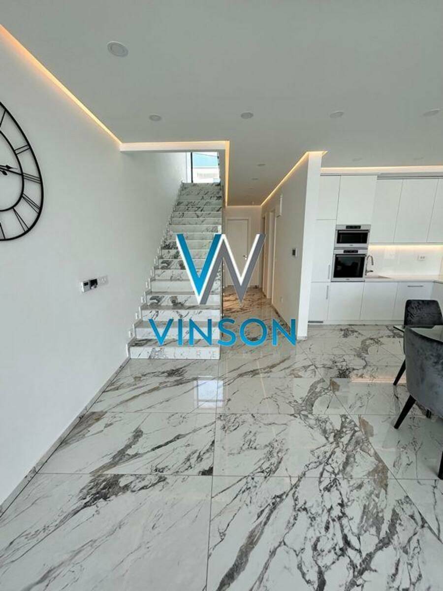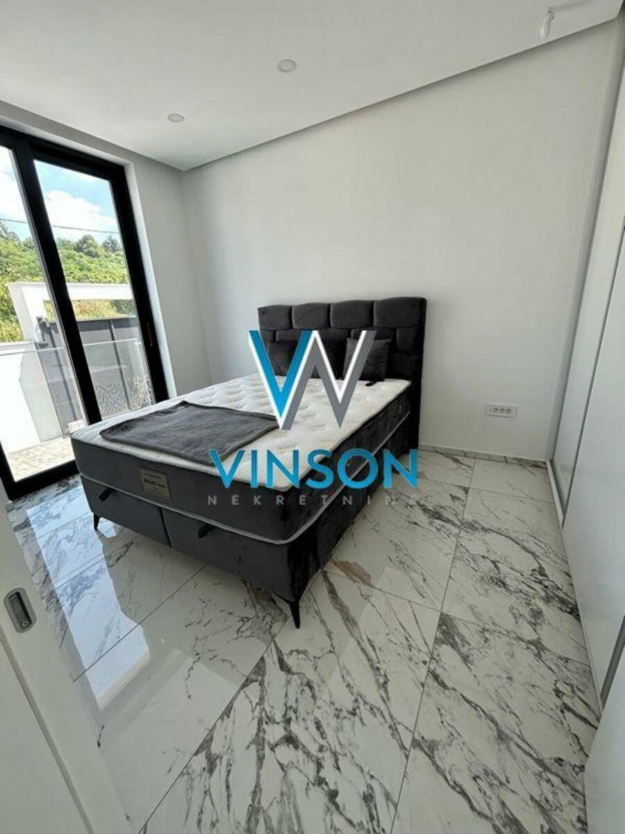Sremska Kamenica. Izdvajamo iz ponude luksuznu nekretninu jedinstvenih karakteristika i visokog kvaliteta opreme i gradnje. Četvorosobna, kompletno nameštena kuća. Ovaj stambeni prostor, građen po principu smarthome sistema, poseduje dve etaže. Prvu etažu predstavlja lep i svetao dnevni boravak sa trpezarijom, uvučena kuhinja i kupatilo sa tuš kabinom. Iz dnevnog boravka se izlazi na prostranu terasu i dvorište sa bazenom. Druga etaža je rezervisana za spavaću zonu i nju čine tri spavaće sobe i kupatilo sa tuš kabinom. Na krovu se nalazi terasa, koji se moze pretvoriti u letnji djardino sa pogledom na grad. Trenutno je na istoj postavljen behaton. Podno grejanje u celoj kući i split sistem u svakoj prostoriji (grejanje i hlađenje). Video nadzor i alarm. Useljiva odmah. (Vinson nekretnine, Novi Sad, Reg. br. posrednika: 1085)