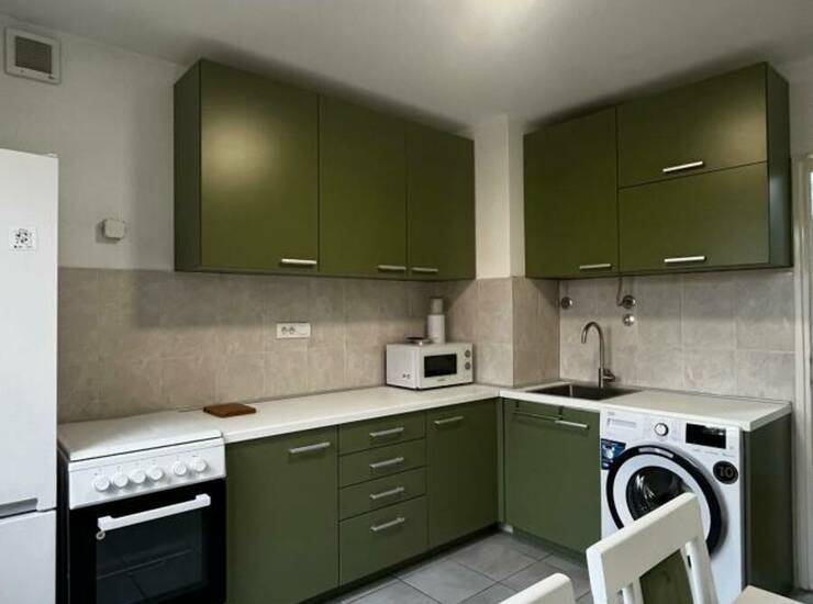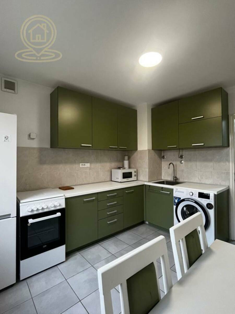 Stan je potpuno renoviran, sa novim električnim i vodovodnim instalacijama, kao i nameštajem. Kuhinja je urađena u smirujućem, zelenom tonu i potpuno je odvojena od dnevne sobe, čime je zadržan klasičan raspored prostora.