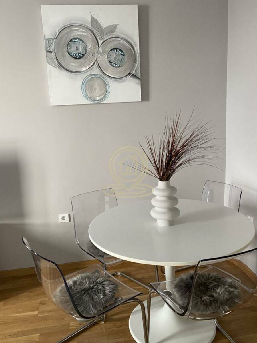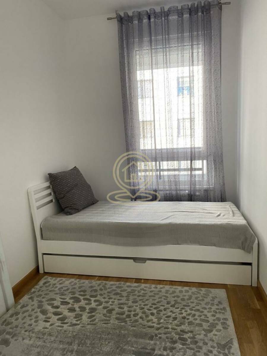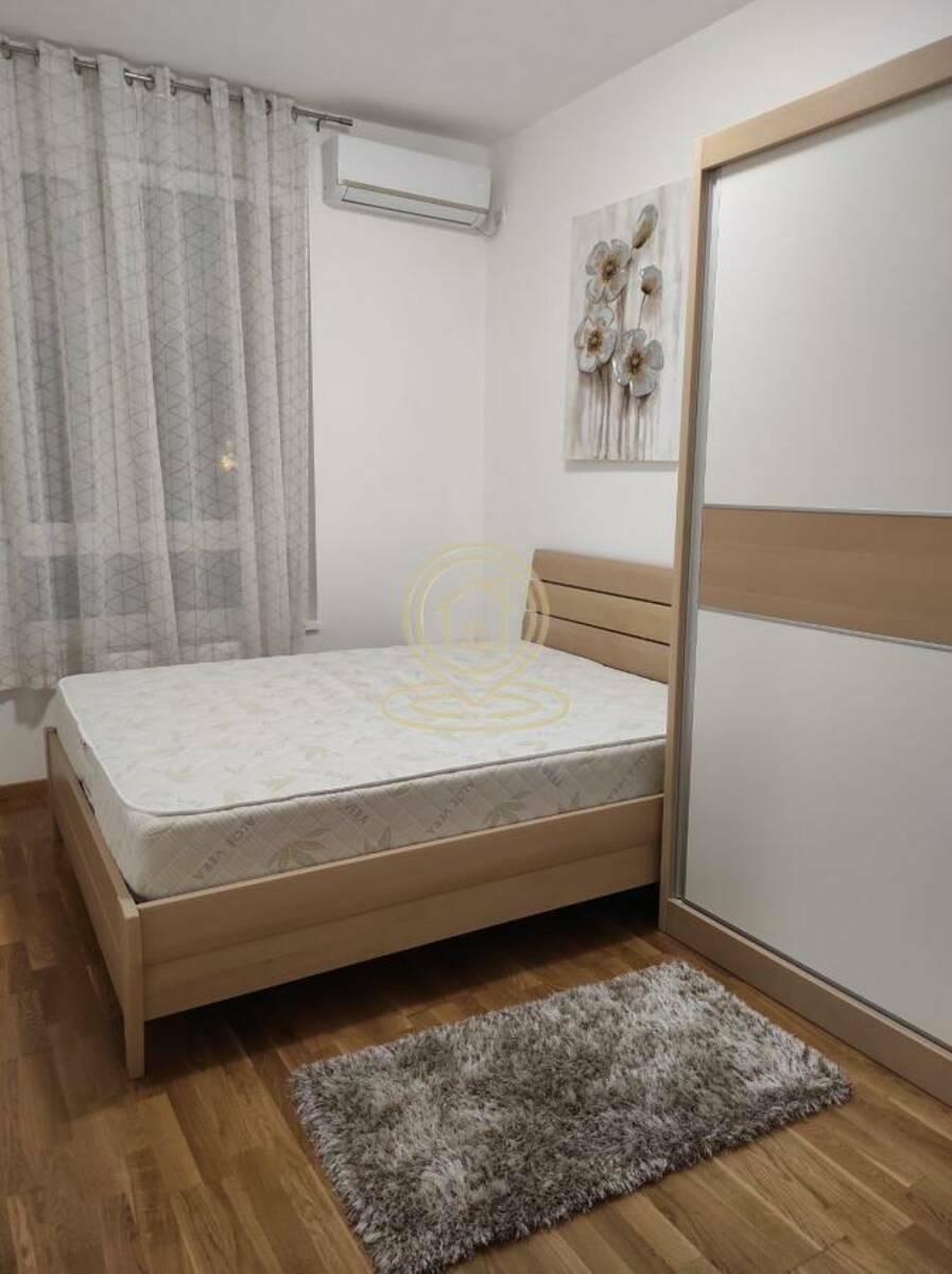 Sastav i oprema: dnevni boravak sa trpezarijom, savremeno opremljena kuhinja, spavaća soba, dečja soba, kupatilo i terasa. Namešteno, dve klime, mašina za pranje i sušenje veša, sudomašina, interfon. Grejanje: centralno (CG). Niski i kontrolisani mesečni režijski troškovi: oko 50 € mesečno. Odmah useljiv.