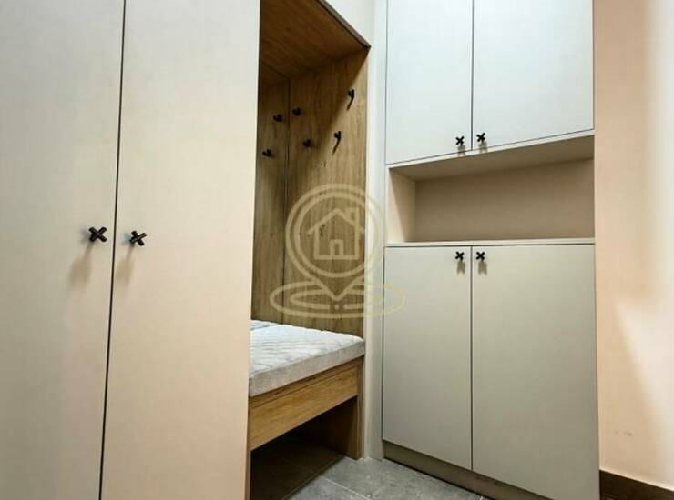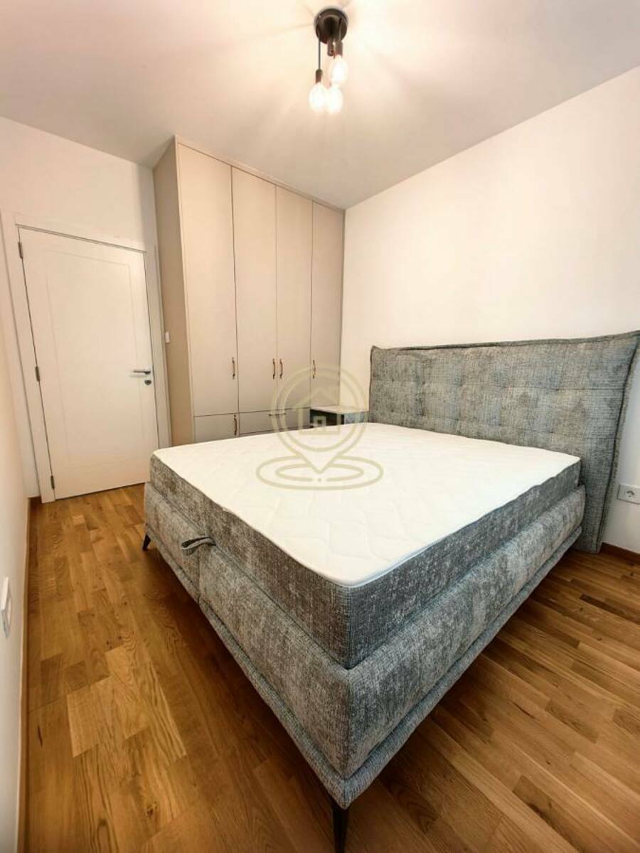 Stan je funkcionalnog rasporeda i sastoji se od dnevnog boravka sa kuhinjom, izdvojene spavaće sobe, kupatila, dodatnog toaleta i terase. Enterijer je moderno uređen, a stan je kompletno opremljen novim nameštajem i kvalitetnom tehnikom.