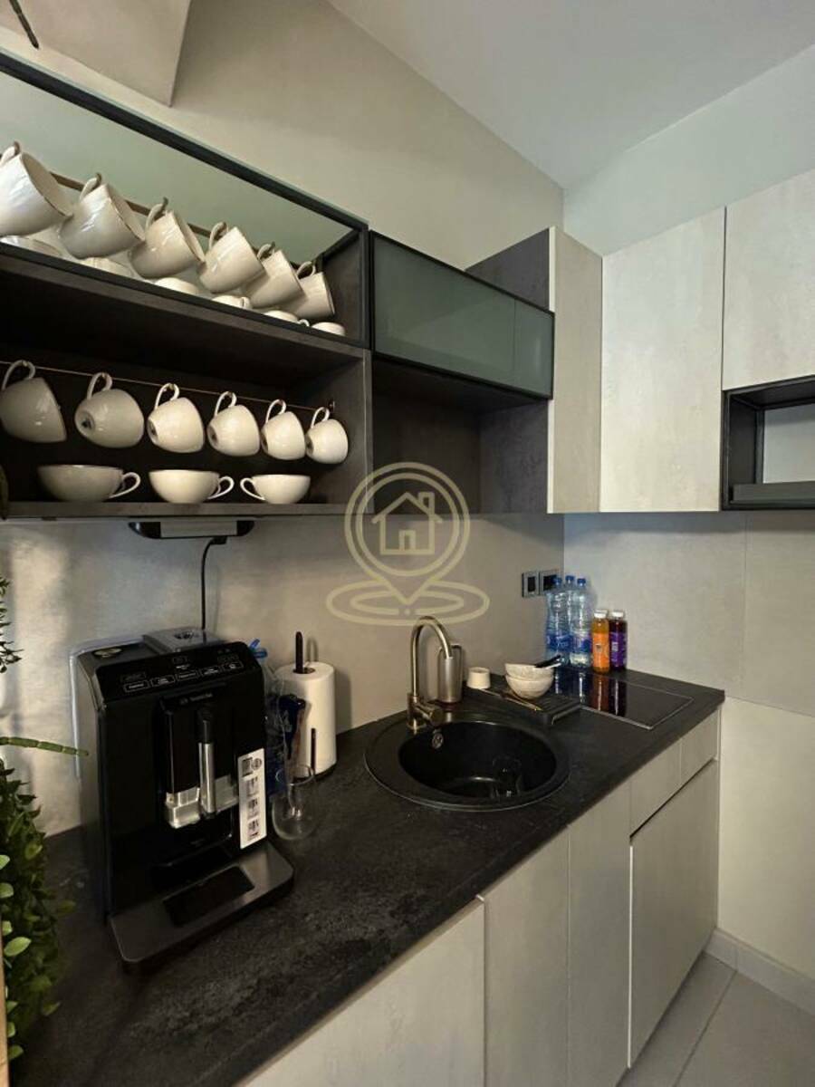 Stan poseduje mini čajnu kuhinju potpuno opremljenu Bosch aparatima – kafe aparat, frižider i mašinu za sudove.
