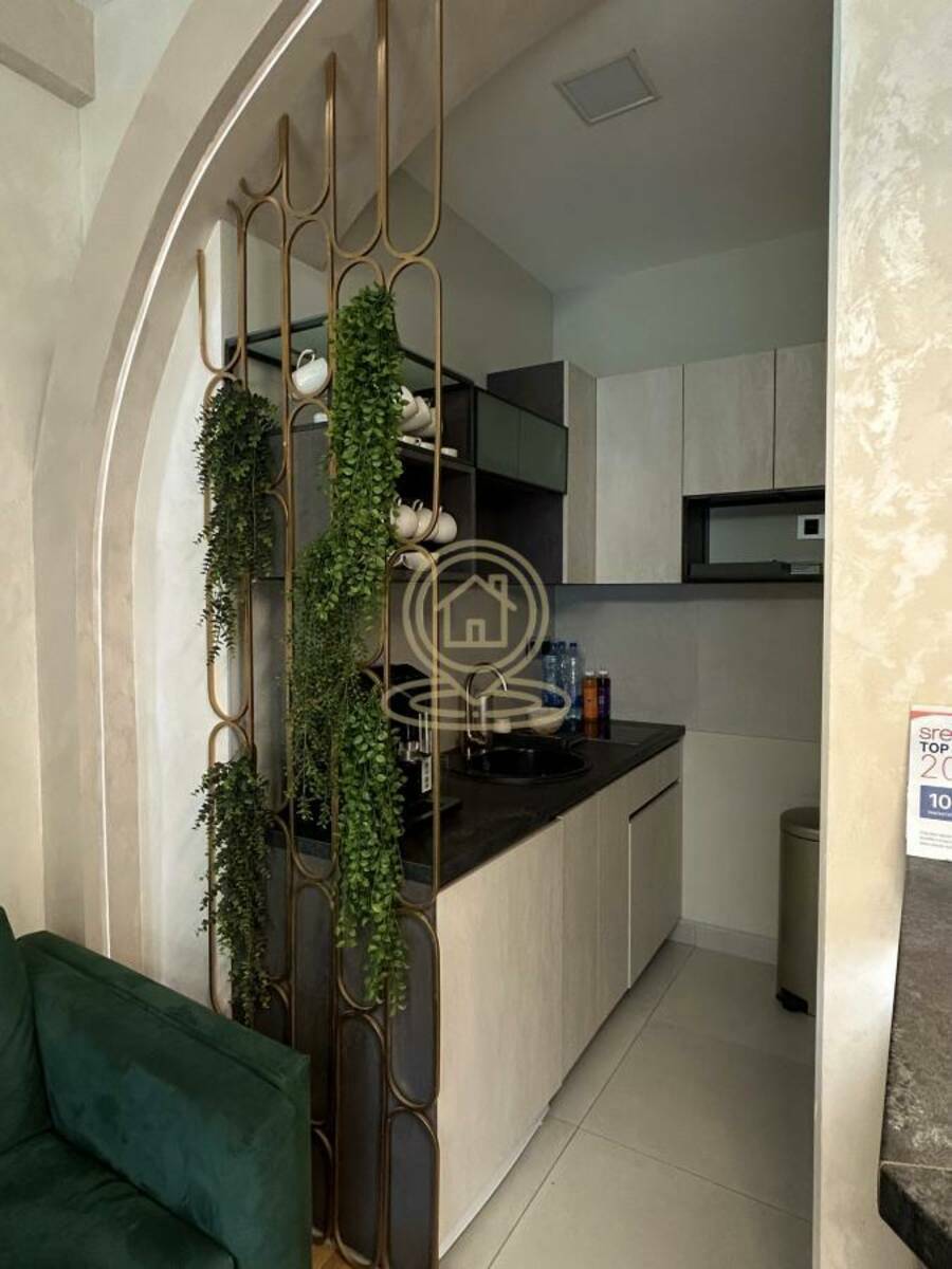 Prostor poseduje mini čajnu kuhinju potpuno opremljenu Bosch aparatima – kafe aparat, frižider i mašinu za sudove. Tu je i prostran balkon orijentisan ka dvorištu na zapadnoj strani, što obezbeđuje mirno i prijatno okruženje za rad.