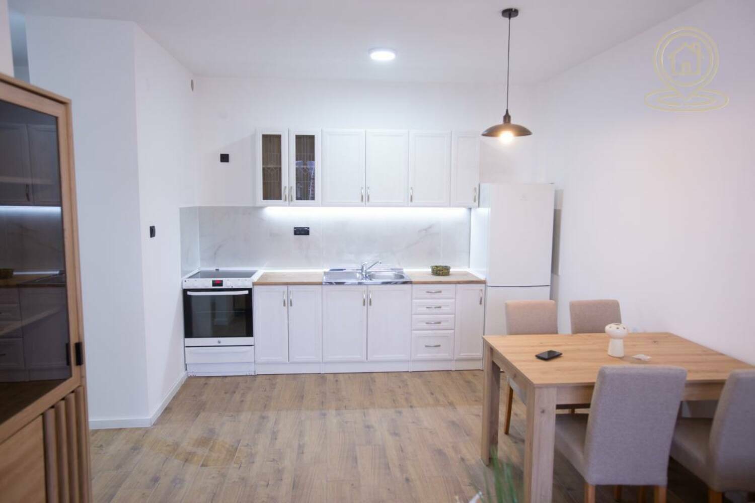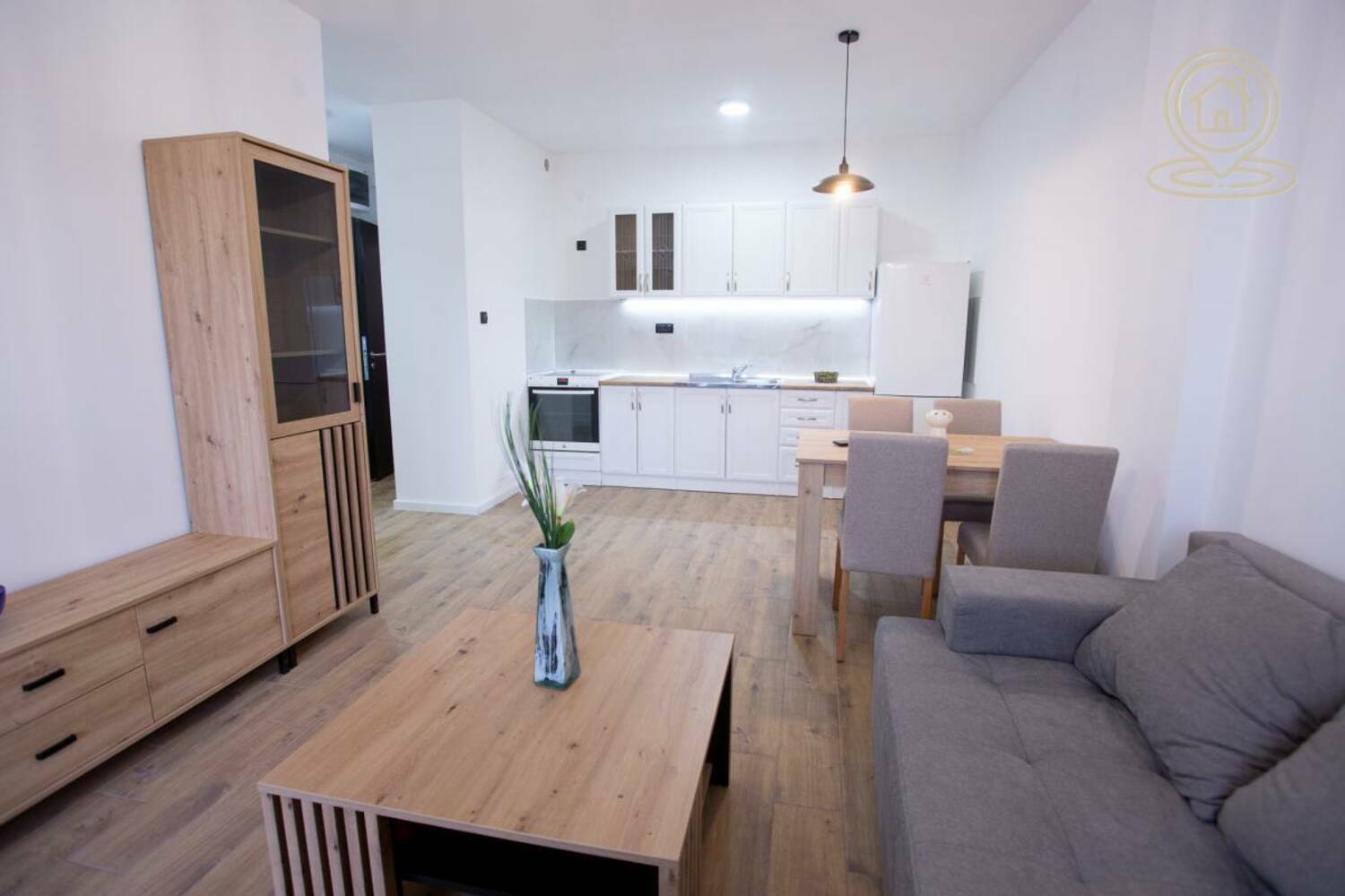 Stan je nov, potpuno namešten i odmah useljiv, a nalazi se na 1. spratu manje zgrade sa ukupno 2 sprata.