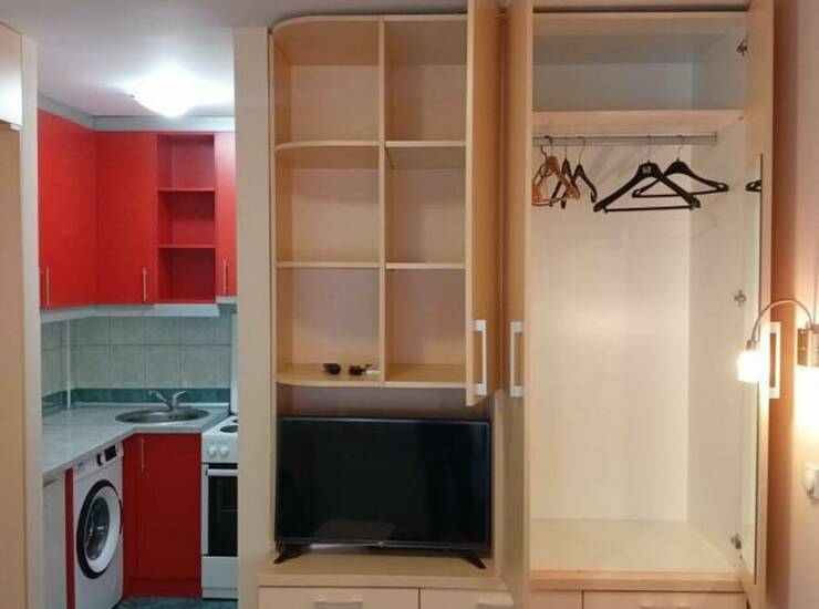Garsonjera je funkcionalno organizovana i potpuno opremljena za svakodnevni život.