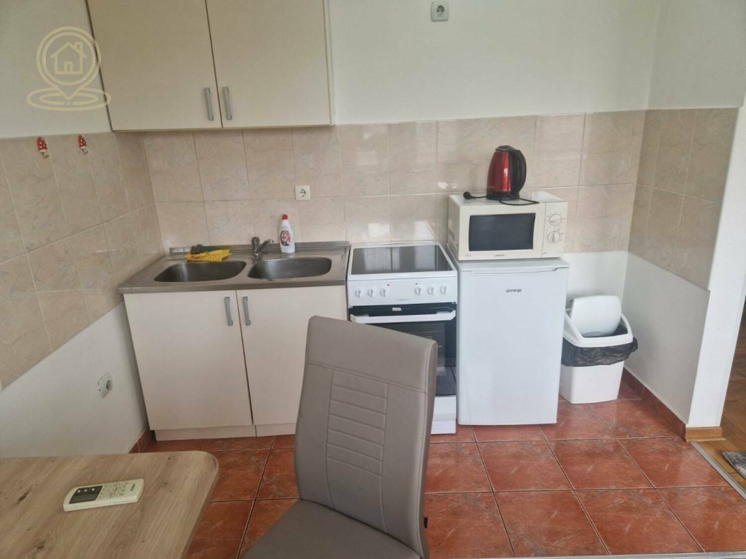 Garsonjera je nameštena i poseduje sve osnovne uređaje potrebne za svakodnevni život. Od bele tehnike u stanu se nalaze šporet, frižider, mikrotalasna rerna, klima uređaj, veš mašina i usisivač.