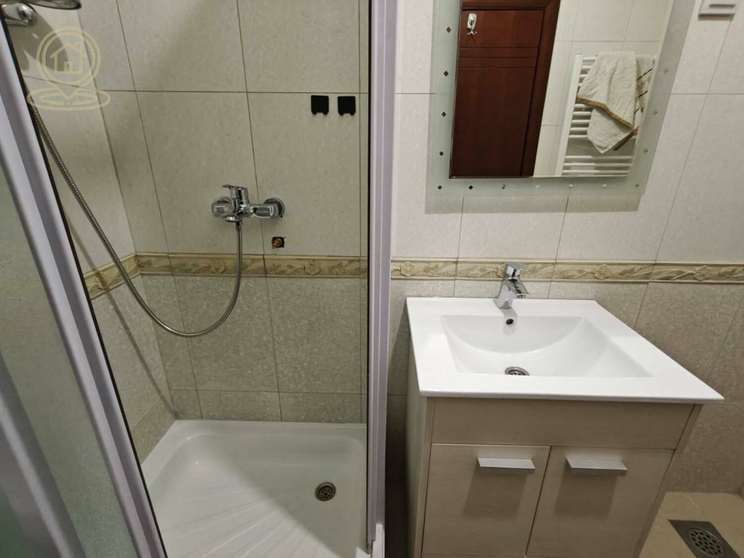 Kupatilo ima tuš kabinu i veš mašinu.